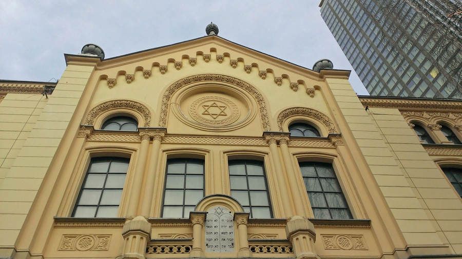 Du hast Recht, die Synagoge wirkt so. Dabei ist es eigentlich umgekehrt. Denn normalerweise muss man die Hochhäuser als Fremdkörper bezeichnen. Die Synagoge ist gar nicht von der Hauptstraße zu sehen.