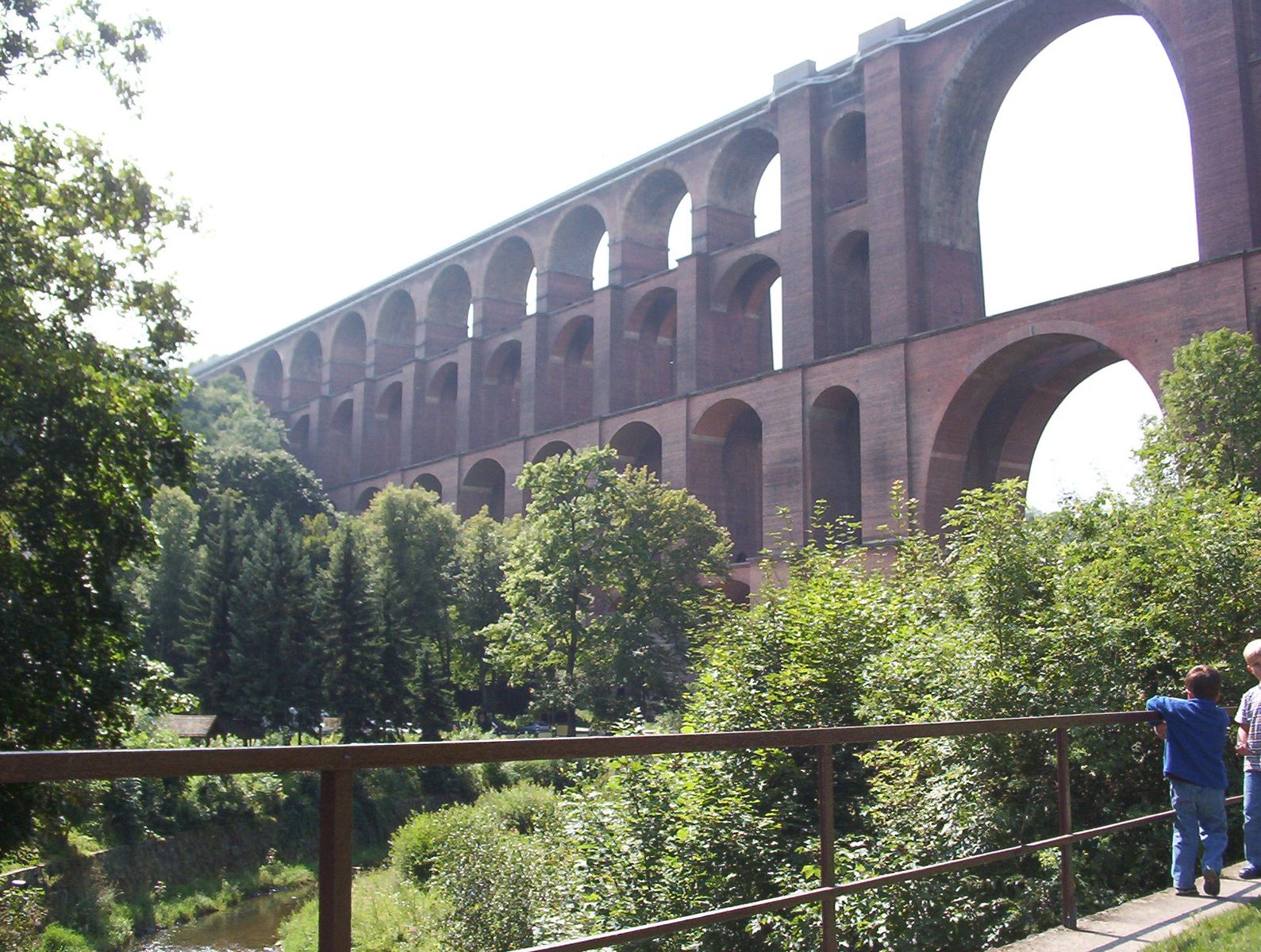 Die Göltzschtalbrücke ist die größte Ziegelsteinbrücke der Welt. Gebaut 1846-51 und ist bis heute in Betrieb. Sie steht in der Nähe von Reichenbach im Vogtland (Sachsen), es ist eine Eisenbahnbrücke. Vom Wohnort meiner Oma war es nicht besonders weit zur Brücke. Wir sind diverse Male mit dem Zug drüber gefahren, waren auch hin und wieder zu Fuß dort zum Wandern, hat mich immer beeindruckt das Teil. Und wie man sieht, war ich auch mit meinen Jungs schon dort, auch wenn wir jetzt ganz am anderen Ende der Republik wohnen....