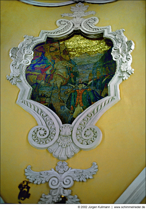Wo sich das Deckengemälde ‘ganz genau’ befindet, kann ich heute selbst nicht mehr sagen. Die Zeit, in der viele Kameras zu jedem Foto GPS-Koordinaten speichern, waren damals noch nicht angebrochen.