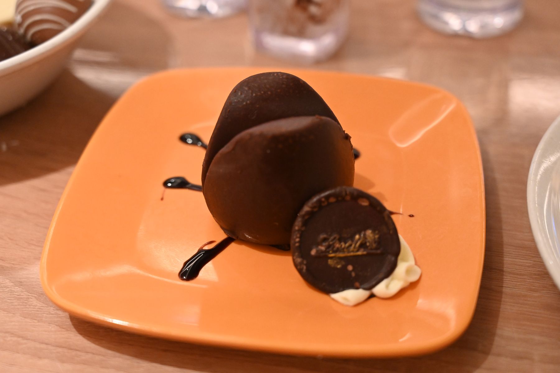 Diese konnten wir uns im Lido-Buffetrestaurant zwar nicht selber nehmen, aber man bekam eine ziemlich große Auswahl von den Crewmitglieder. Meine Frau bekam eine Schüssel mit einer Pralinenauswahl und ich sagte zu der Dame, sie solle mich überraschen. Herausgekommen ist dann für uns beide die folgende Auswahl: