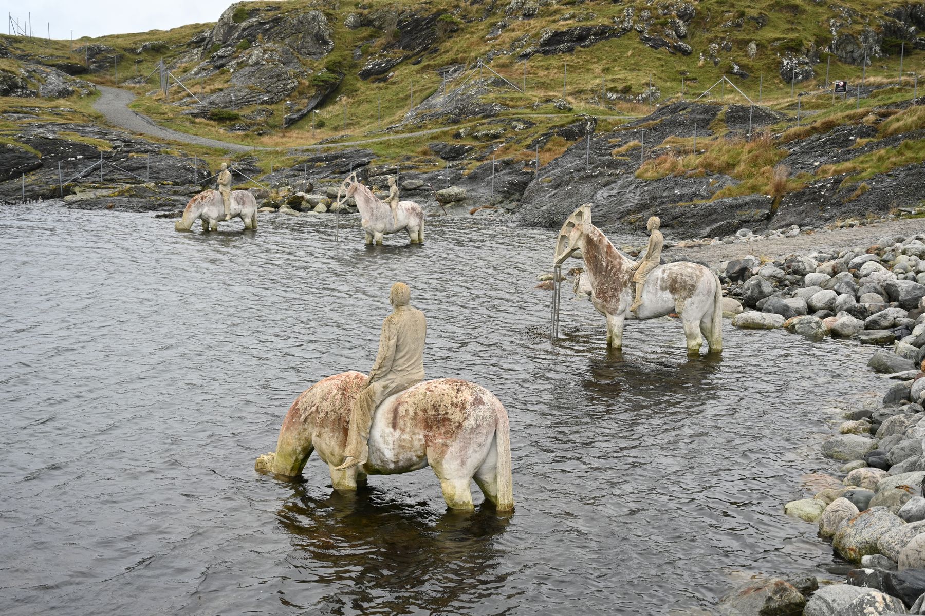 Auch in Haugesund legten wir einige Kilometer zu Fuß zurück und spazierten durch den Ort an der Küste entlang zum Nationalmonument und zu einer Kunstinstallation am Ufer: