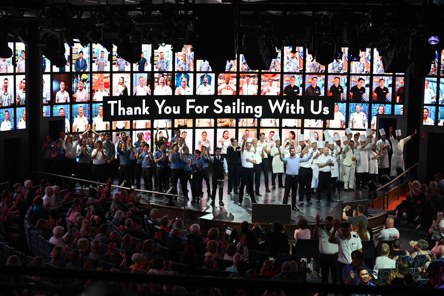 Am Morgen gab es im Theater ("World Stage") eine 45-minütige Veranstaltung namens "City at the Sea". Neben Hotelmanagerin und Entertainment-Chefin kamen auch der Chefkoch sowie der Kapitän zu Wort. Die Veranstaltung war extrem gut gemacht und es wurden auch zahlreiche andere Crew-Mitglieder eingebunden. Am Ende standen viele von ihnen unter tosendem Applaus mit auf der Bühne: