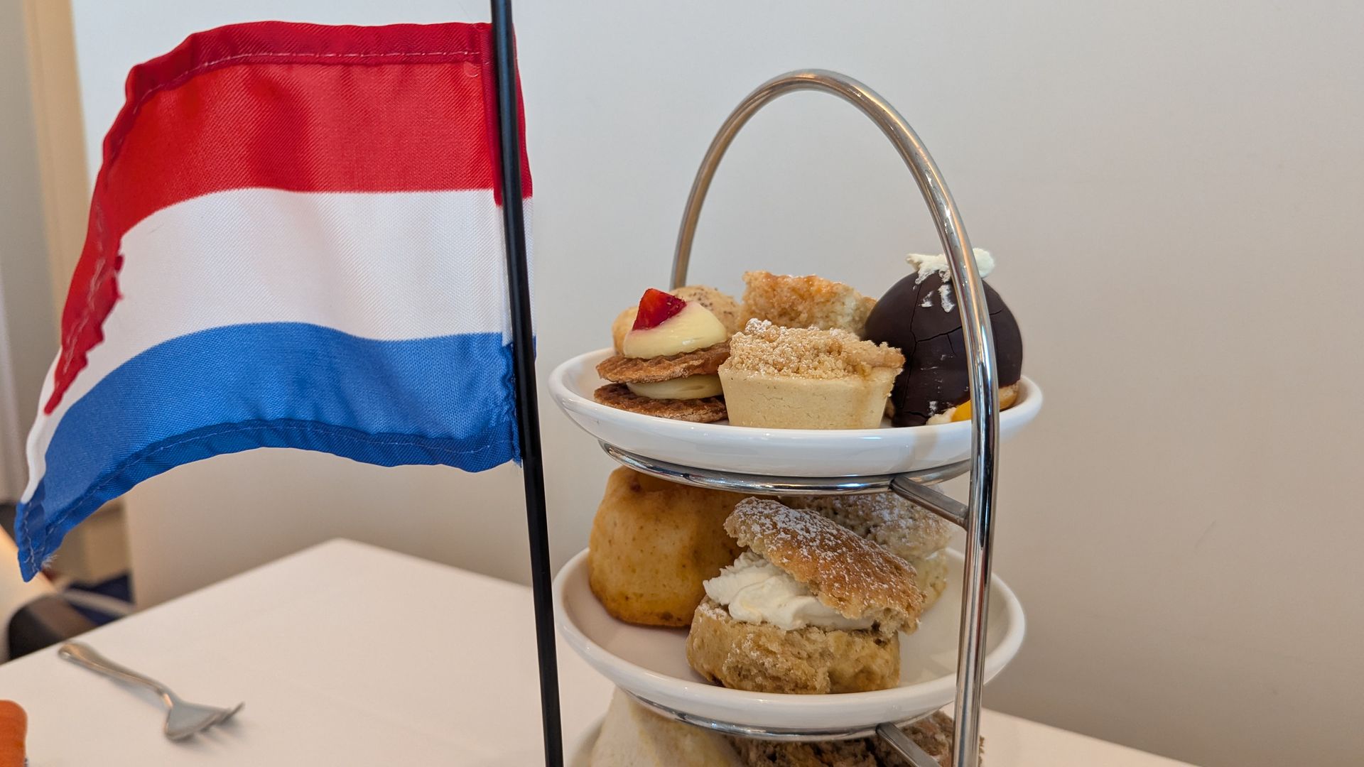 Zugleich war dieser Tag auch der Tag, der auf jeder Kreuzfahrt mit Holland America Line am meisten gefeiert wird - die Orange Party zu Ehren des niederländischen Erbes. Wie gesagt, wir waren (absichtlich) nicht gut vorbereitet. Sonst hätten wir gewusst, dass man sich an diesem Tag orange kleidet. Das Schiff war geschmückt und es gab noch Schokolade als Extra obendrauf: