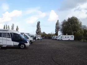 Zentrumsnaher, bewachter und beschrankter Stellplatz in Amsterdam. Bezahlt wird am Automaten