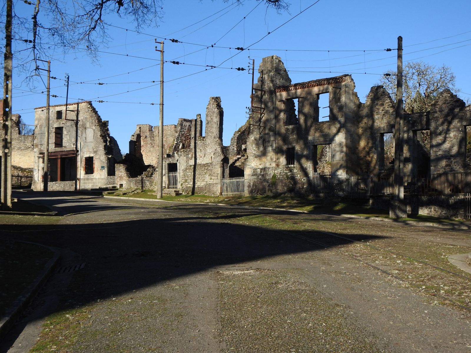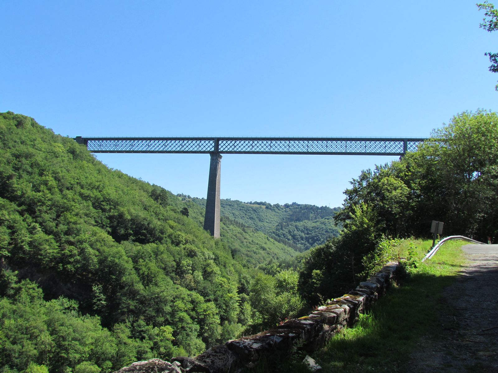Ich weise mal auf den Strommast in der Mitte hin. Dieser trägt die Leitung für eine durch Teile des Tals verlaufende Kleinbahn.