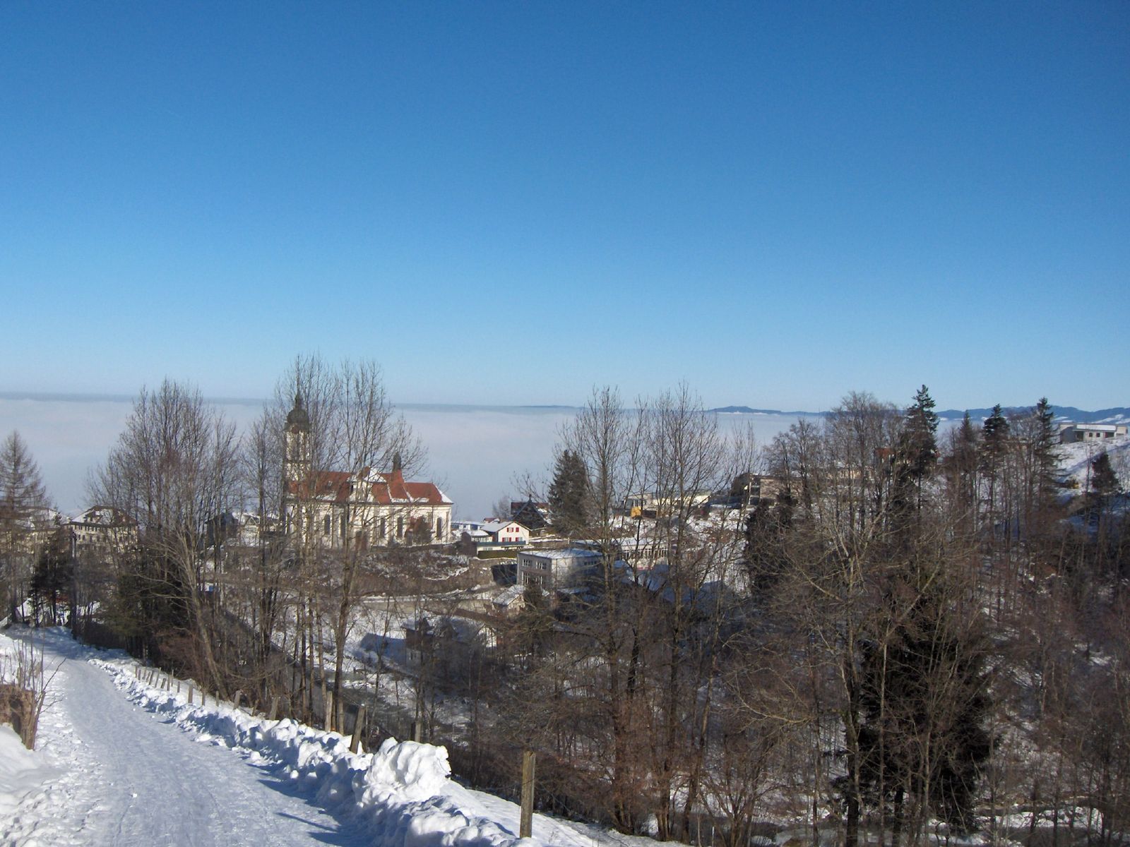Naja, sowohl der Forggensee als auch das Nebelhorn liegen in Deutschland, wo es aber keine Kantone gibt. Mit "Nebelmeer" ist tatsächlich die Suppe im Bildhintergrund gemeint. Die gehört in gewissen Gegenden der Schweiz einfach zum Winter dazu.
