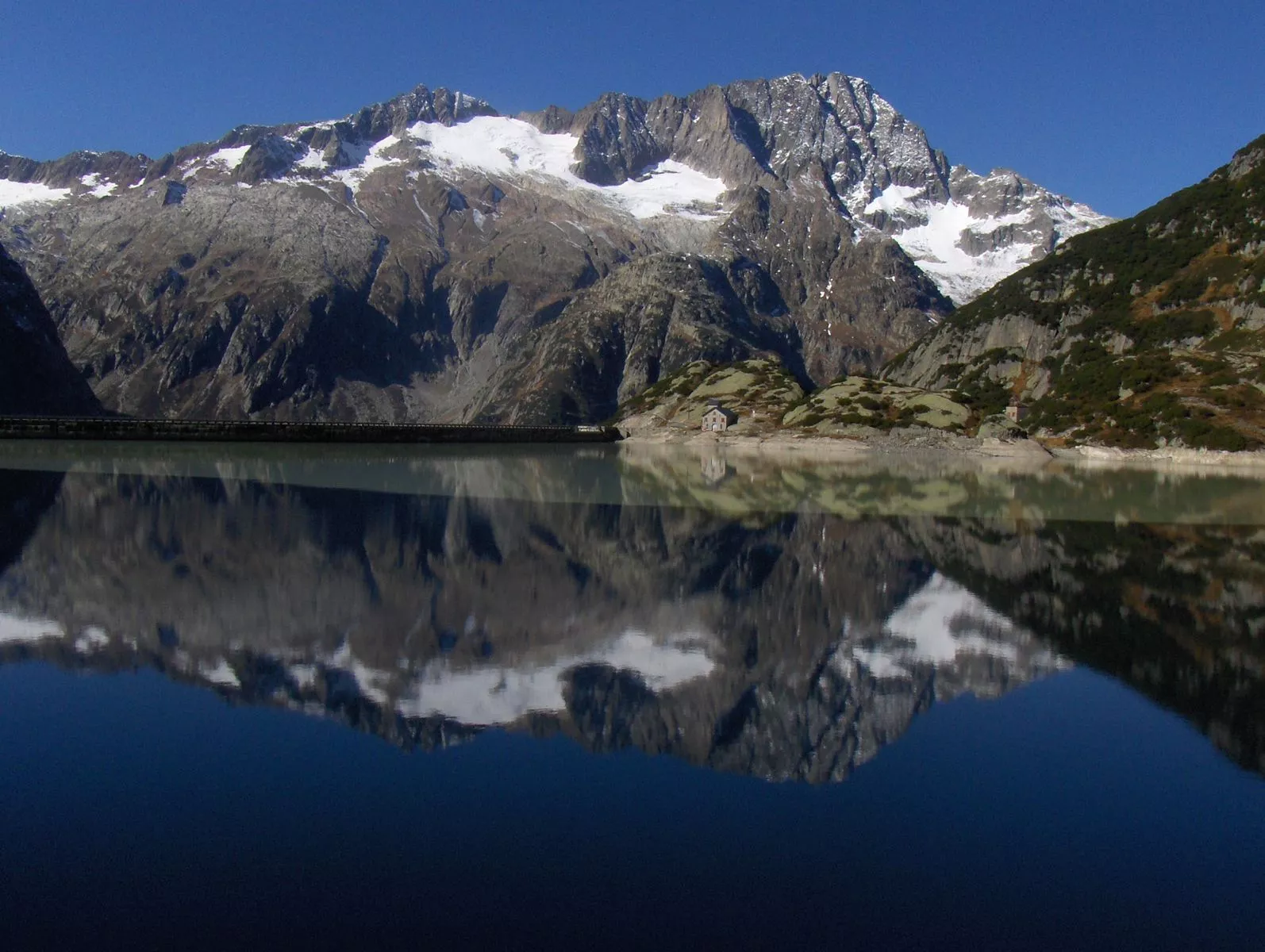 Du bist hier wohl gewandert und zwar um einen See herum. Genauer gesagt, handelt es sich um einen Stausee. Eines der beiden Gebäude auf der anderen Seeseite ist eine Bergstation, denn man kann hier mit einer Standseilbahn hinauf fahren.