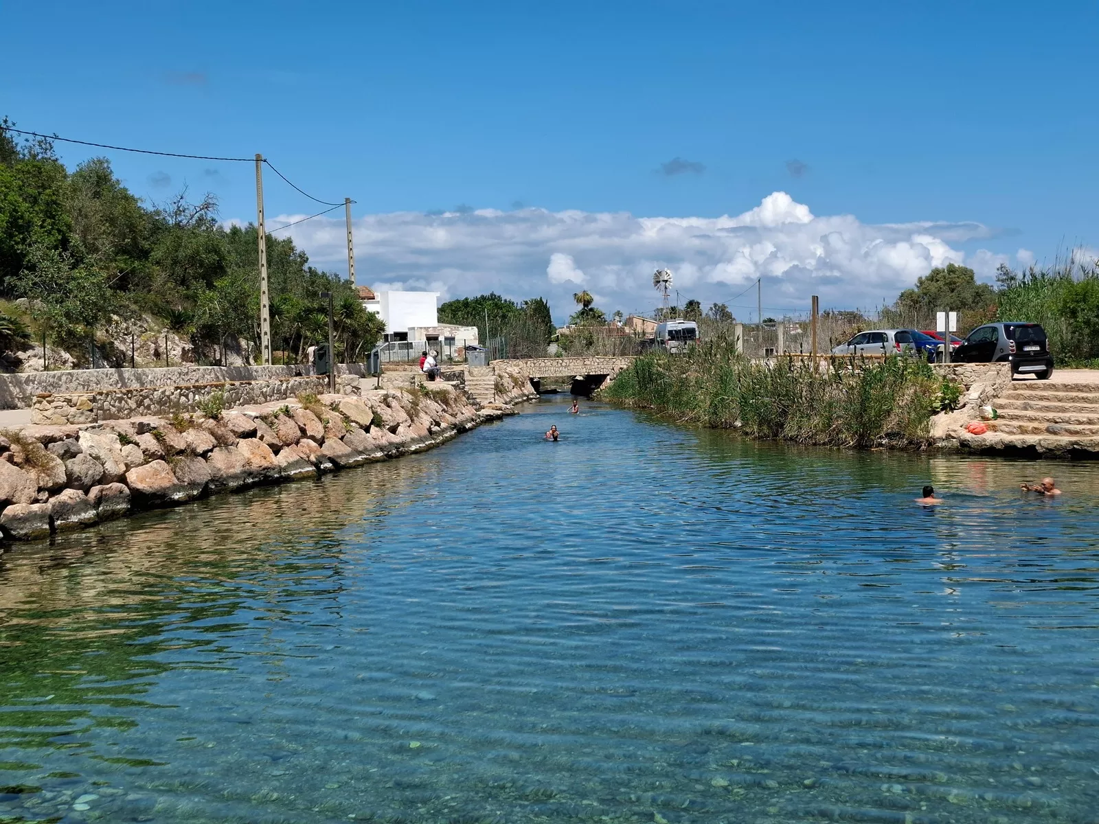 Street View-Ansicht von „Pont de Sant Pere“ · Google MapsCarrer Raco Fuster, 46780 Oliva, Valencia, Spanienwww.google.comdie Brücke heisst Pont de Sant Per und das Becken ist Urb. Sant Per und hat konstant 25° das Wasser und ist eine Thermalquelle