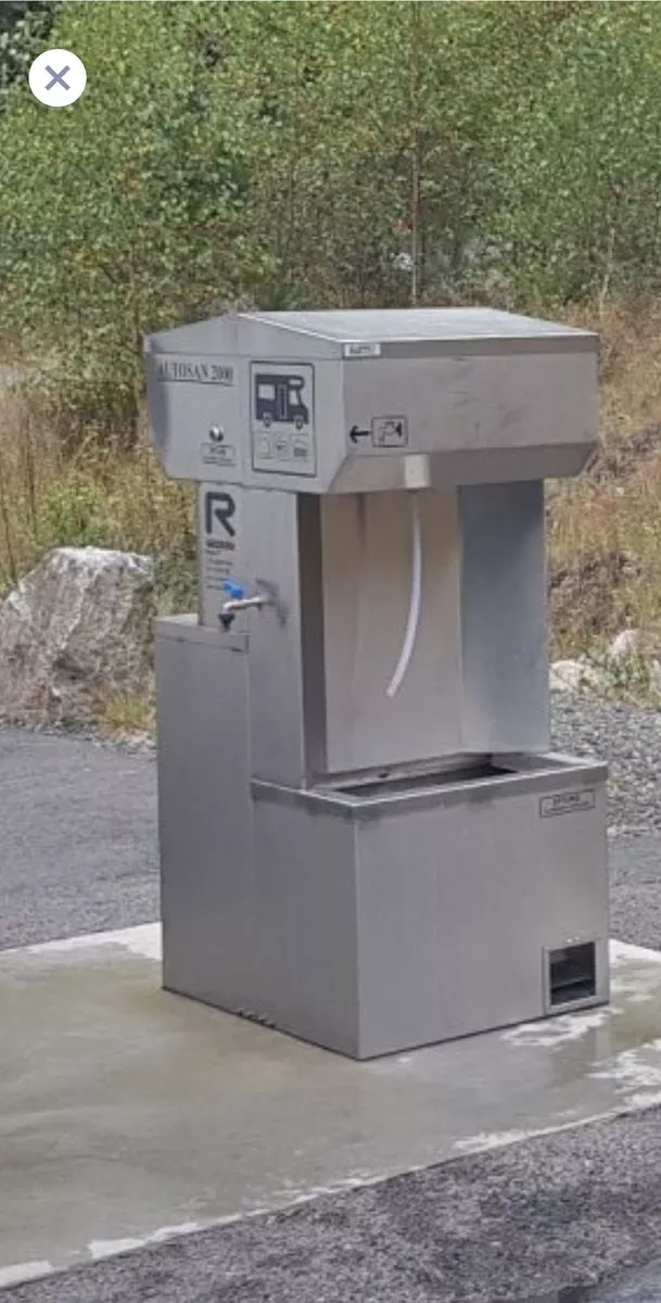An dieser Servicestation wollten wir Frischwasser tanken, hatten unseren kleinen schwarzen Adapter schon an den Frischwasserhahn geschraubt. Da kommt so ein komischer Vogel mit seiner Kassette an und entleert die direkt neben uns. Da ich das nicht direkt miterleben wollte, bin ich beiseite getreten. Als er fertig war, nimmt er seine Dreckskassette und hält die unter den Frischwasserhahn, unter unseren Adapter. Da bin ich ausgerastet, so ein A...
