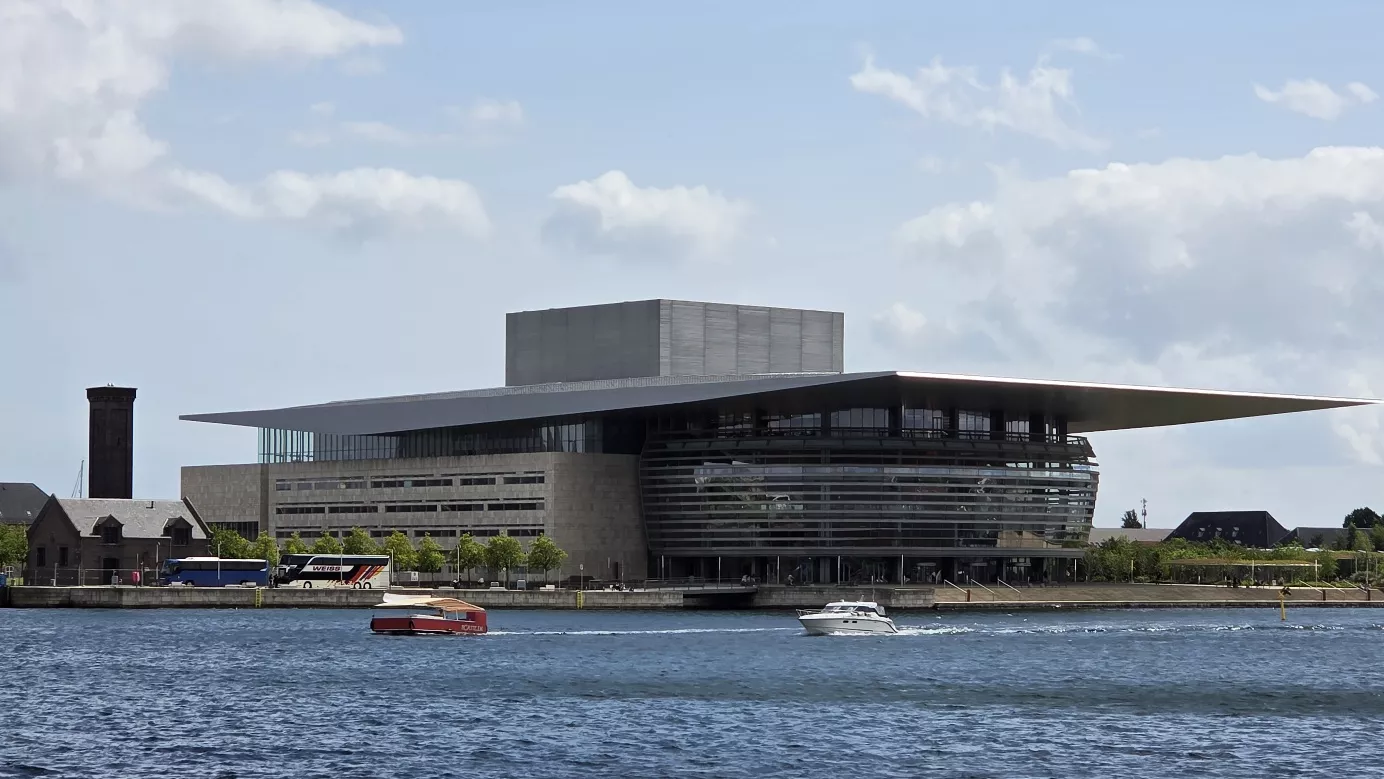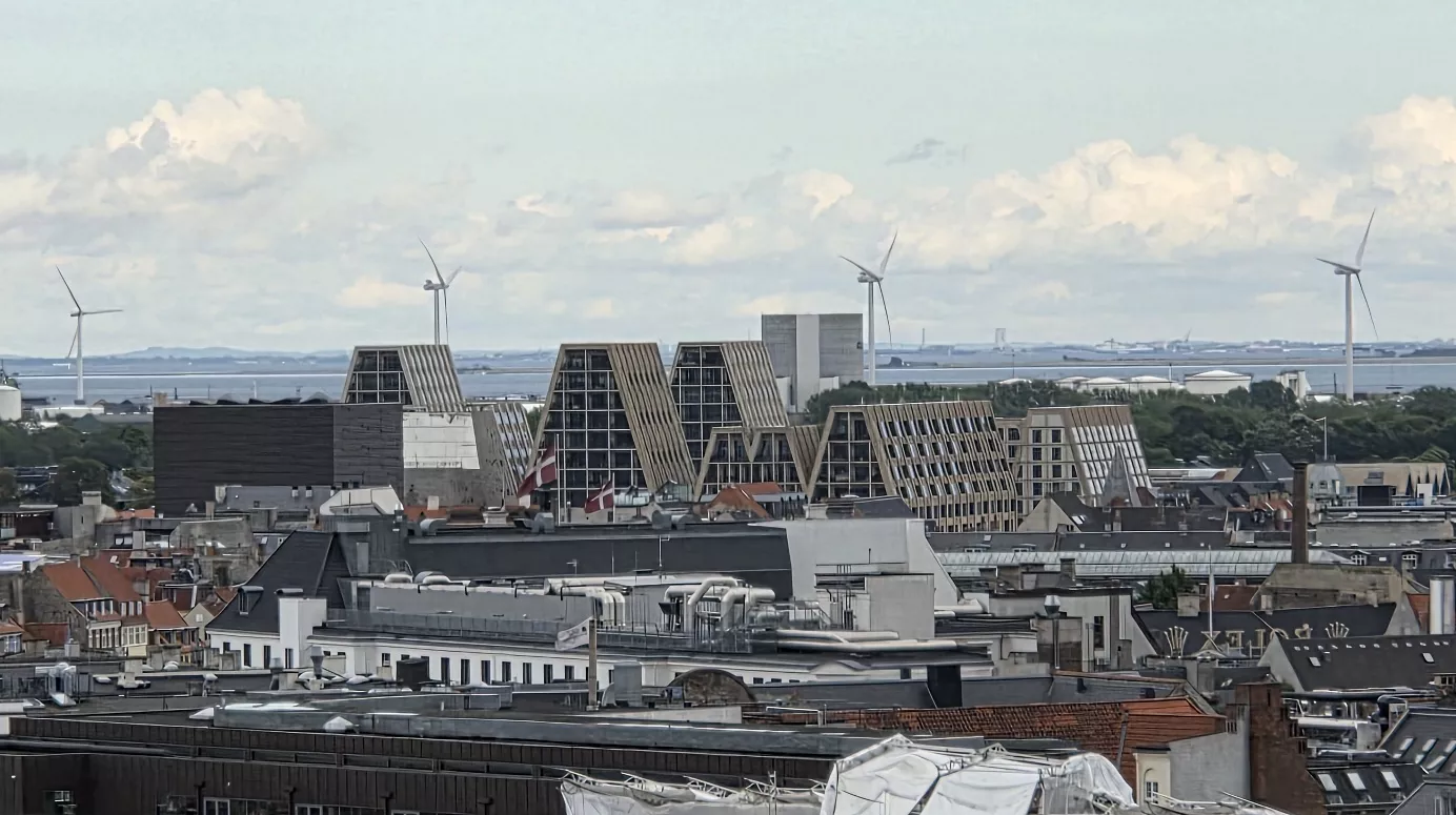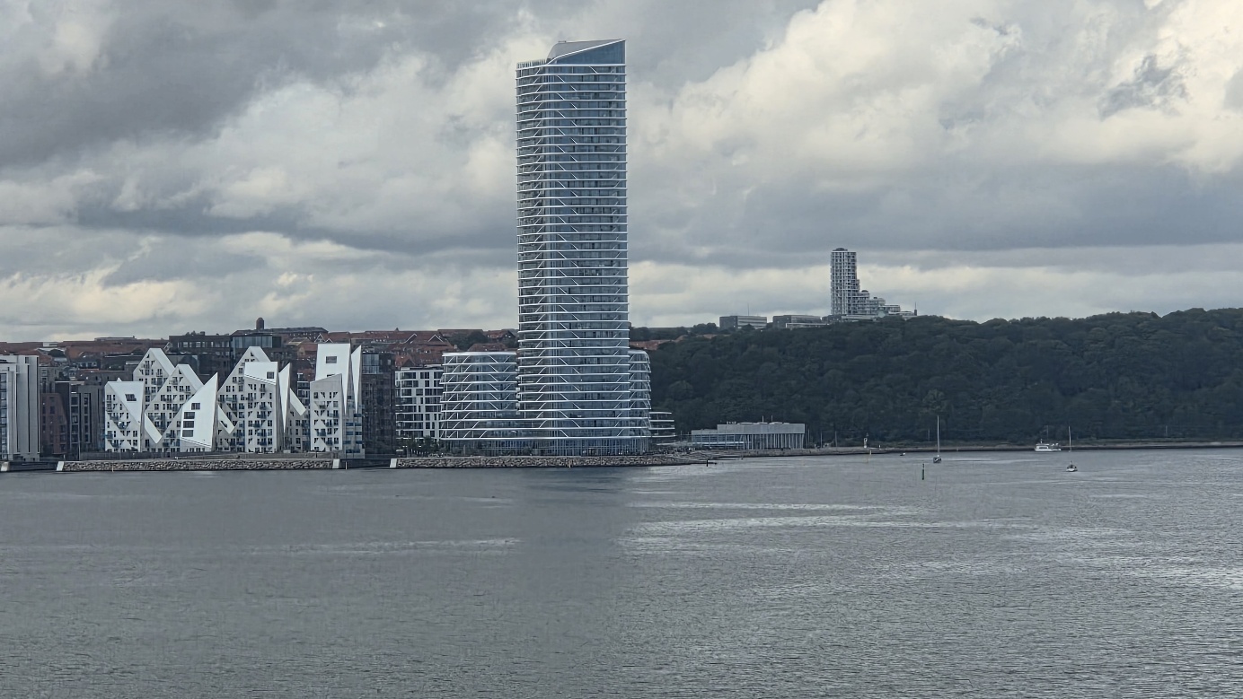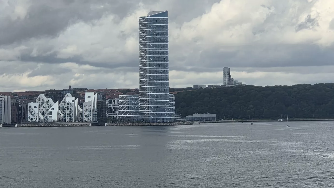 Ausgefallene Gebäude in Aarhus (links neben dem Turm ist der „Eisberg“)