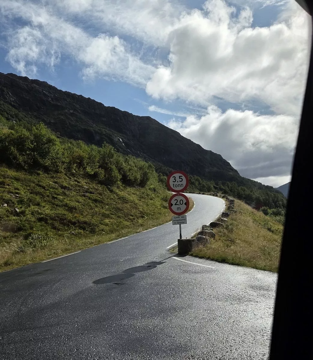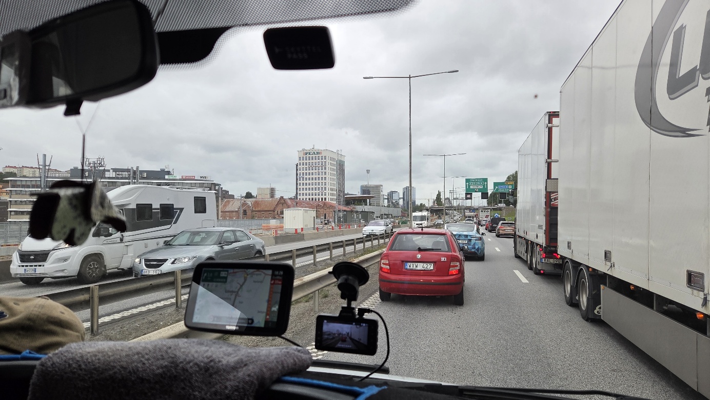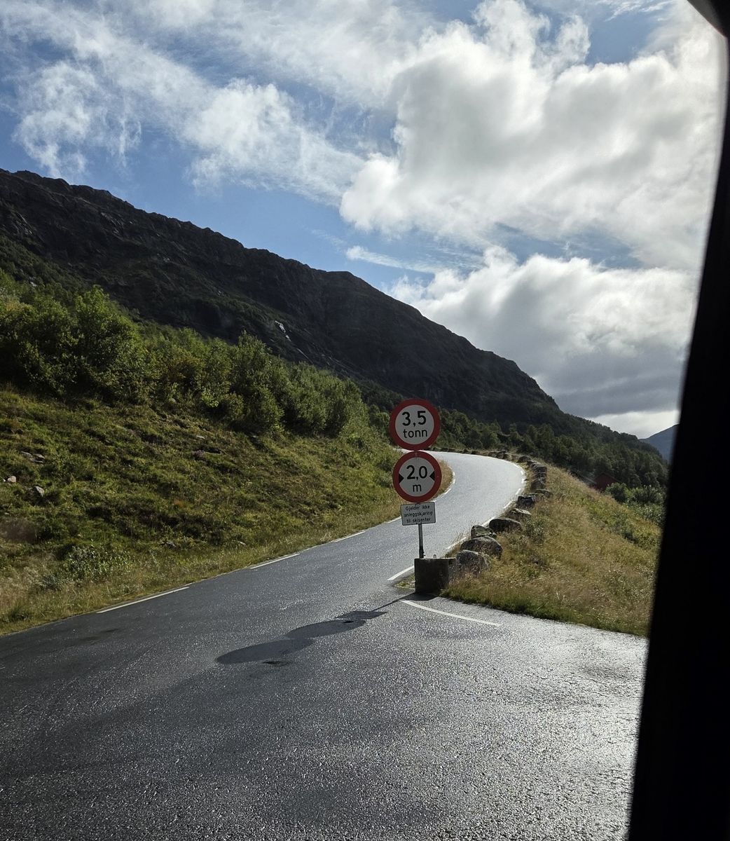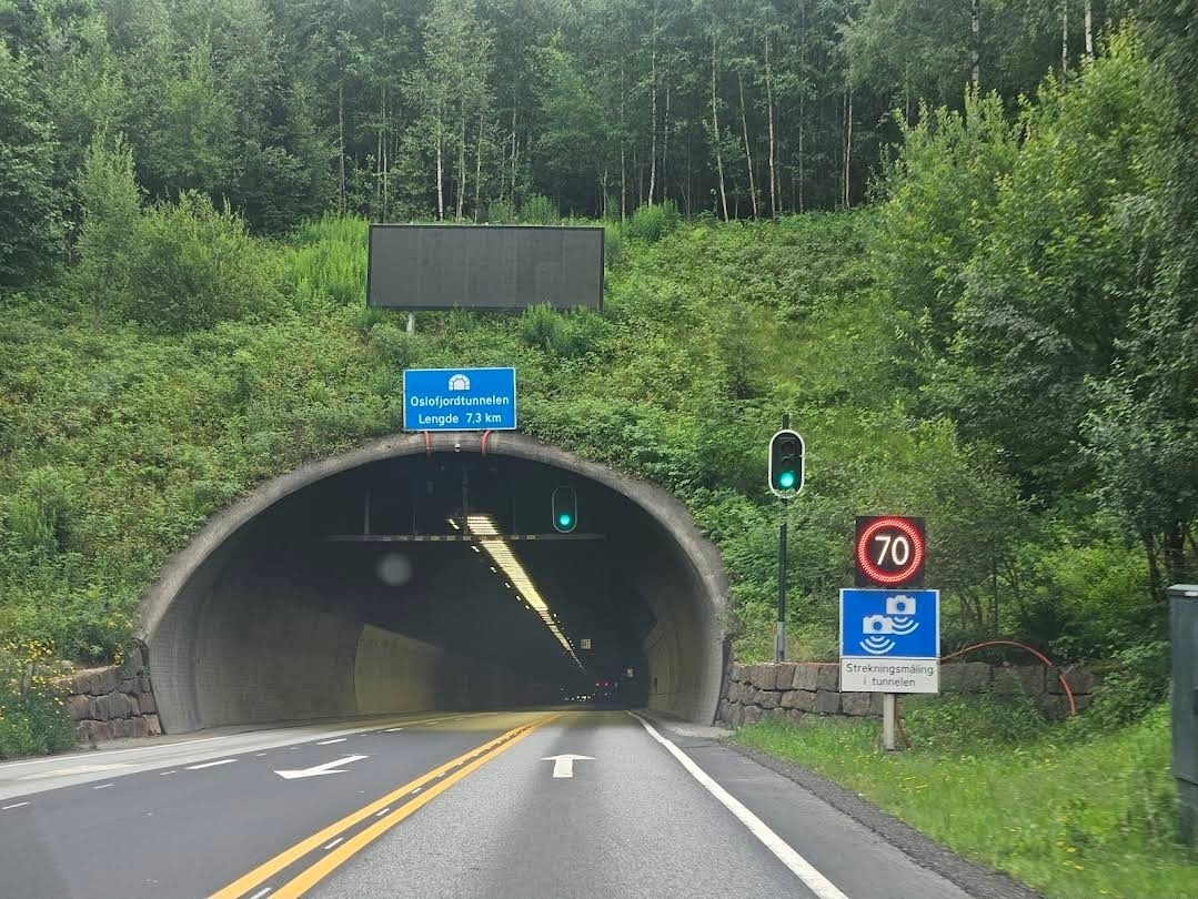 Vor lauter Freude über den langen Tunnel unter dem Oslofjord übersehen wir die Schweller („Bumps“) und kacheln mit fast 50 km/h drüber. Das Geschirr in den Schränken hüpft, die Matratze springt hoch, normalerweise fahren wir mit 25 km/h über diese Hindernisse.