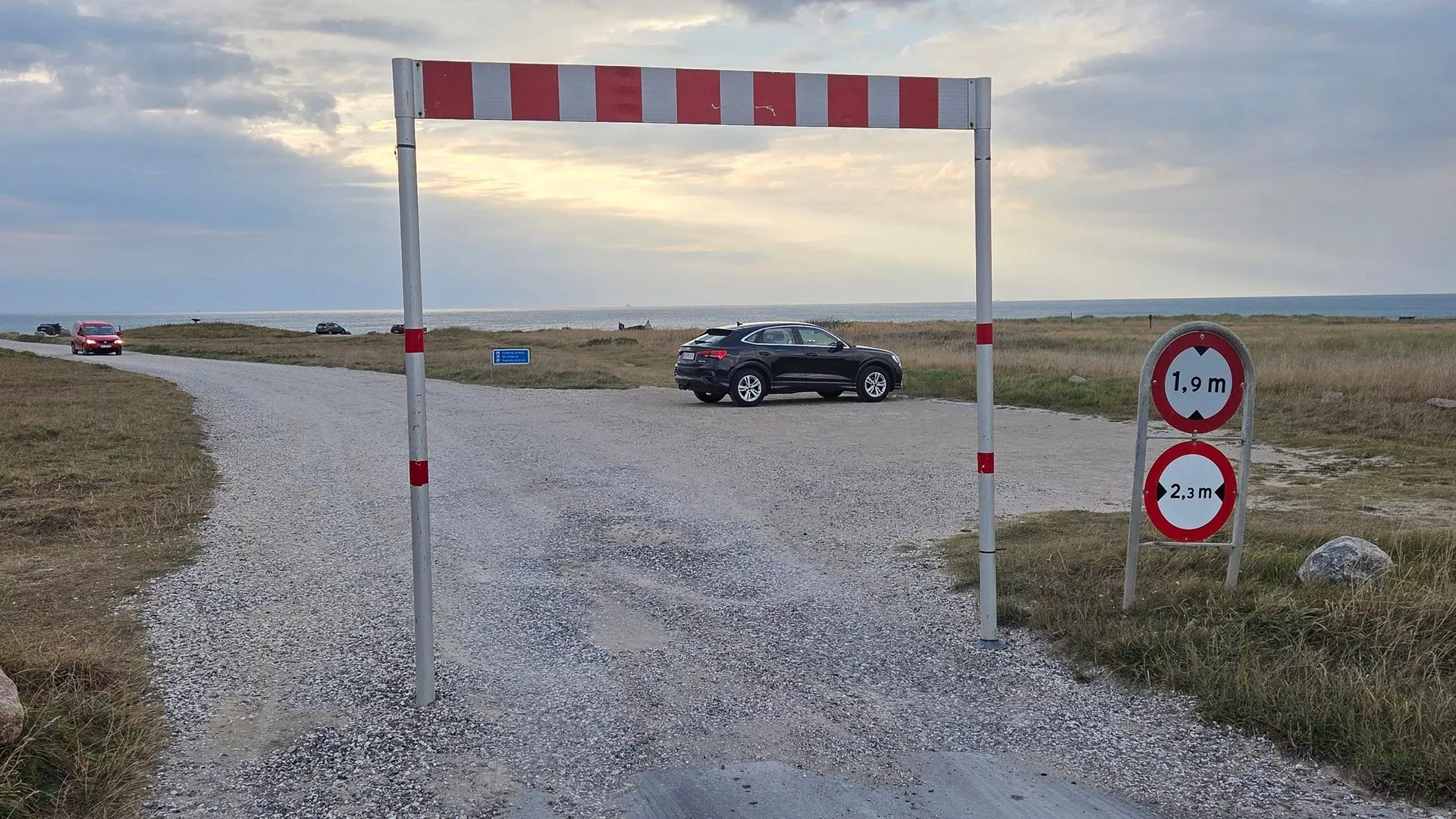 Vor Jahren konnte man noch an diesem Punkt stehen und den Sonnenuntergang bewundern. Das Schild "Camping verboten" gab es damals schon (blaues Schild neben dem geparkten Fahrzeug), aber jetzt ist noch eine Höhenbegrenzung dazu gekommen und man kann mit einem Wohnmobil leider nicht mehr an diesen Platz fahren, um den wunderschönen Sonnenuntergang in Hirtshals zu bewundern.