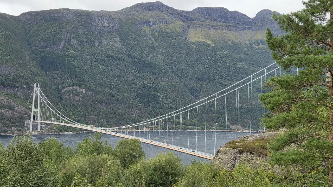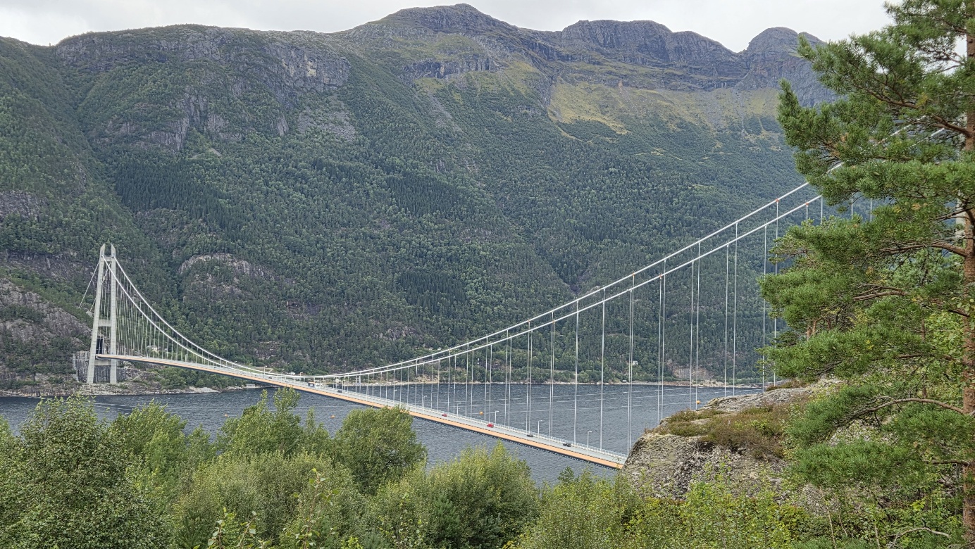 Auf der Hardangerbrücke ist übrigens ein LKW zu sehen.