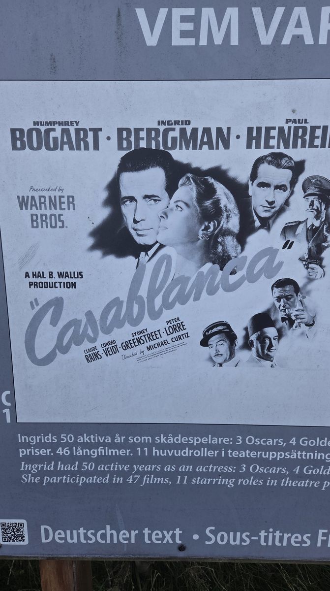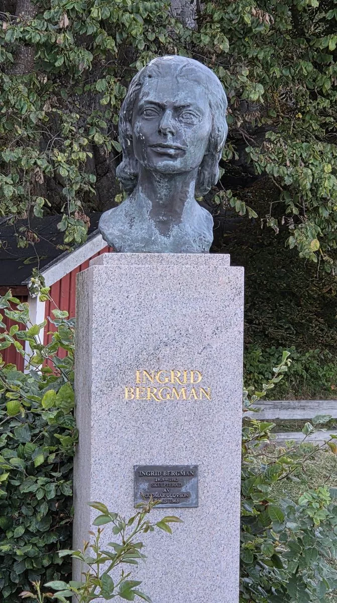 Wir kommen nach Fjällbacka. Da waren wir vor 2 Jahren schon mal. Damals konnten wir nicht mal anhalten oder gar parken, es war brechend voll. Diesmal, anderer Monat, und früh morgens, ist es angenehm leer. Wir sehen die Büste von Ingrid Bergman, deren Asche vor der Küste verstreut wurde. Sie hat hier, bis zu ihrem Tod, lange Zeit auf einer der vorgelagerten Inseln gelebt.