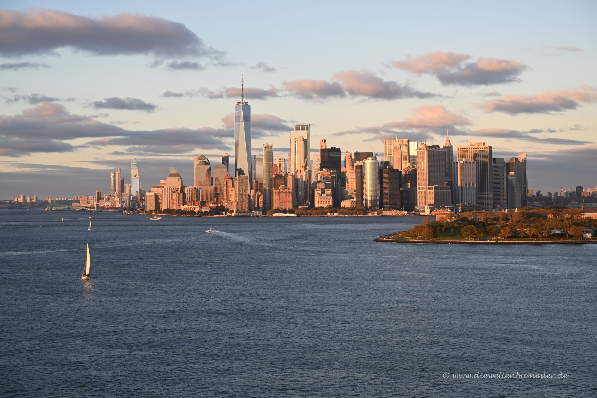 Irgendwann am späten Nachmittag war es dann soweit. Wir legten ab und ließen New York, die USA, ganz Nordamerika hinter uns. Die Freiheitsstatue grüßte uns an Steuerbord, während die Sonne nur noch knapp über dem Horizont stand. Ein paar Wolken waren nur am Himmel und der starke Wind der vergangenen Tage war mittlerweile deutlich abgeflaut. Wir hatten ja schon in den Tagen zuvor auf das Wetter geachtet. Die Queen Mary 2 war an der Ostküste Kanadas unterwegs und es war bei dem herrschenden Sturm sicherlich nicht nur ein Vergnügen an Bord. Später erfuhren wir vom Kapitän, dass wir nun dem Sturm hinterher fahren würden. So lange wir ihn nicht überholen. Denn natürlich hofften wir auch dieses Mal wieder auf eine ruhige Überfahrt.