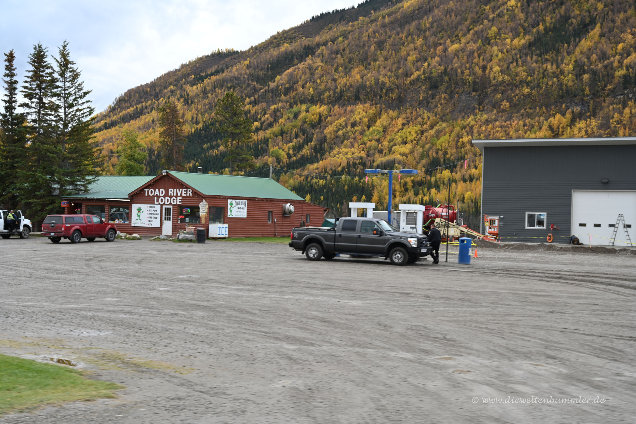 Wir verließen Alaska auf dem gleichen Weg, wie wir diesen amerikanischen Bundesstaat erreichten. Und zwar über die Straße nach Norden, die uns wieder nach Kanada brachte. Wie schon bei der ersten Ausreise aus den USA auf dem Landweg, damals in North Dakota, hat sich auch hier wieder niemand für die Ausreise interessiert.