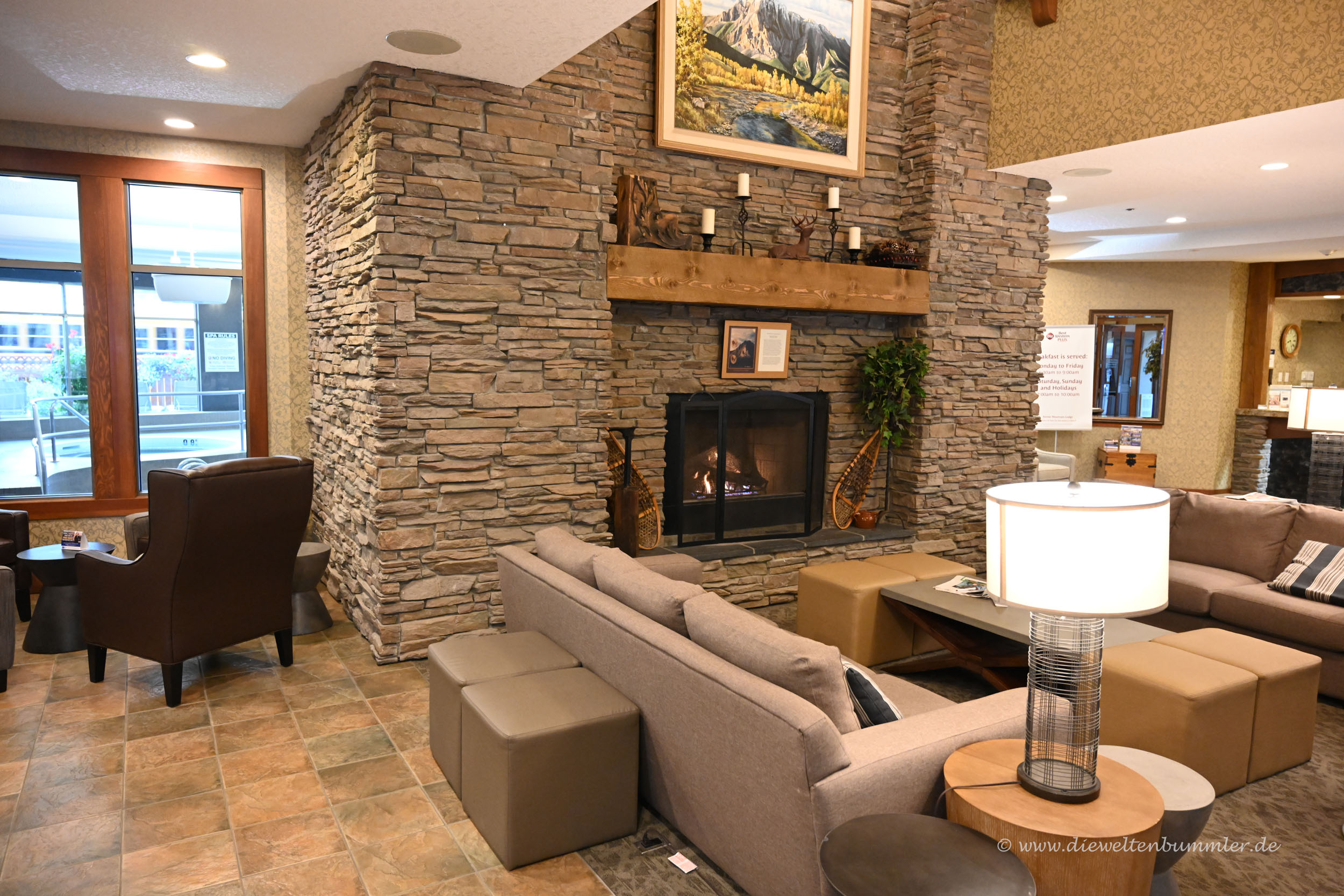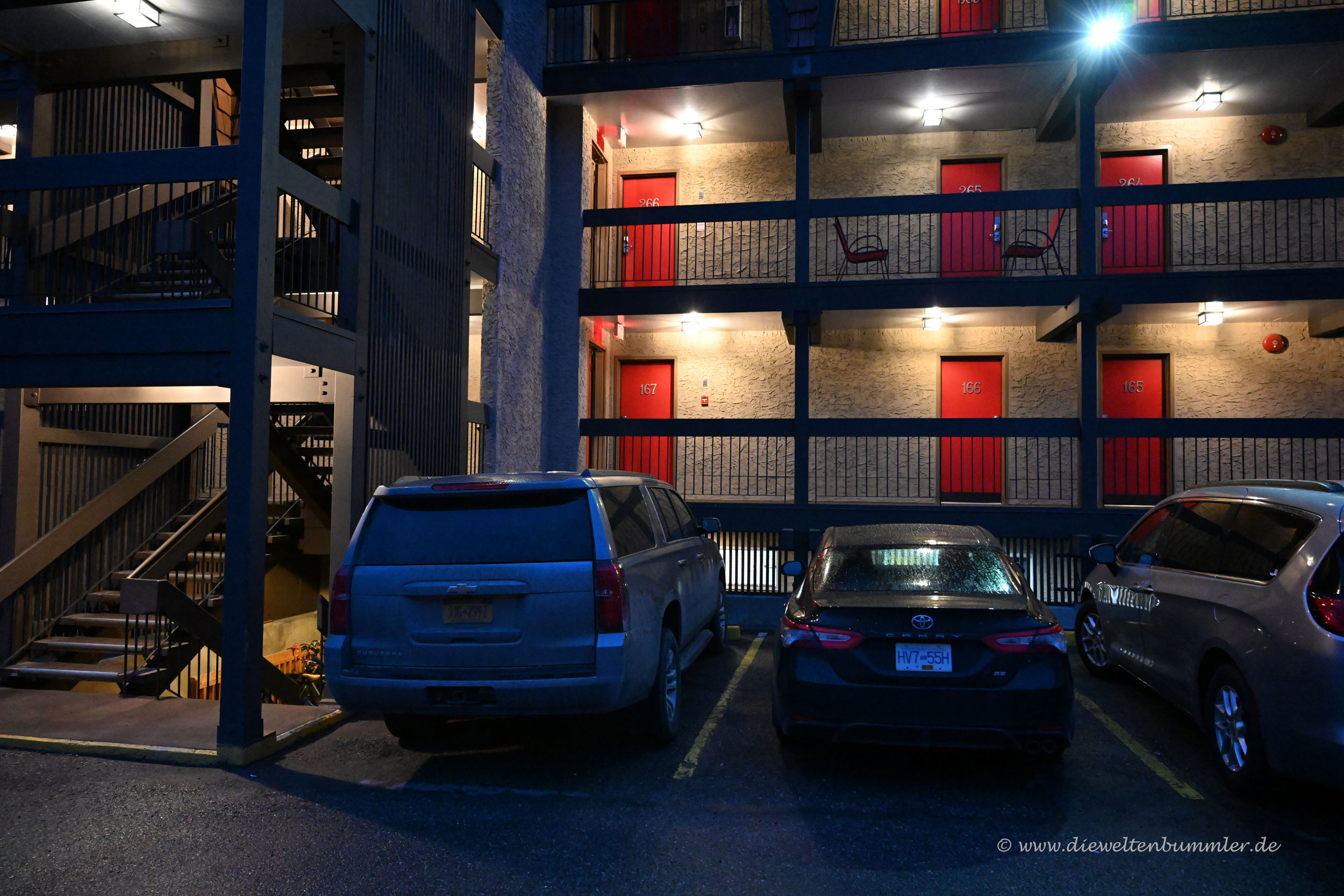 Am späten Abend kamen wir in Banff an und fuhren auch noch durch den kleinen touristischen Ort. Parken war an dem Abend irgendwie unmöglich, dafür war es einfach zu eng und zu voll, was für nordamerikanische Städte natürlich völlig ungewöhnlich ist. Auch die Preise der Hotels waren uns definitiv zu hoch und das dann sogar ohne Parkmöglichkeit, zumindest mitten im Zentrum. Angesichts unserer vielen Koffer, die wir natürlich in der Nacht nicht im Auto ließen, entschieden wir uns lieber, Banff den Rücken zu kehren. Im nächsten Ort, Canmore wurden wir aber schnell mit einem gewöhnlichen Hotel fündig.
