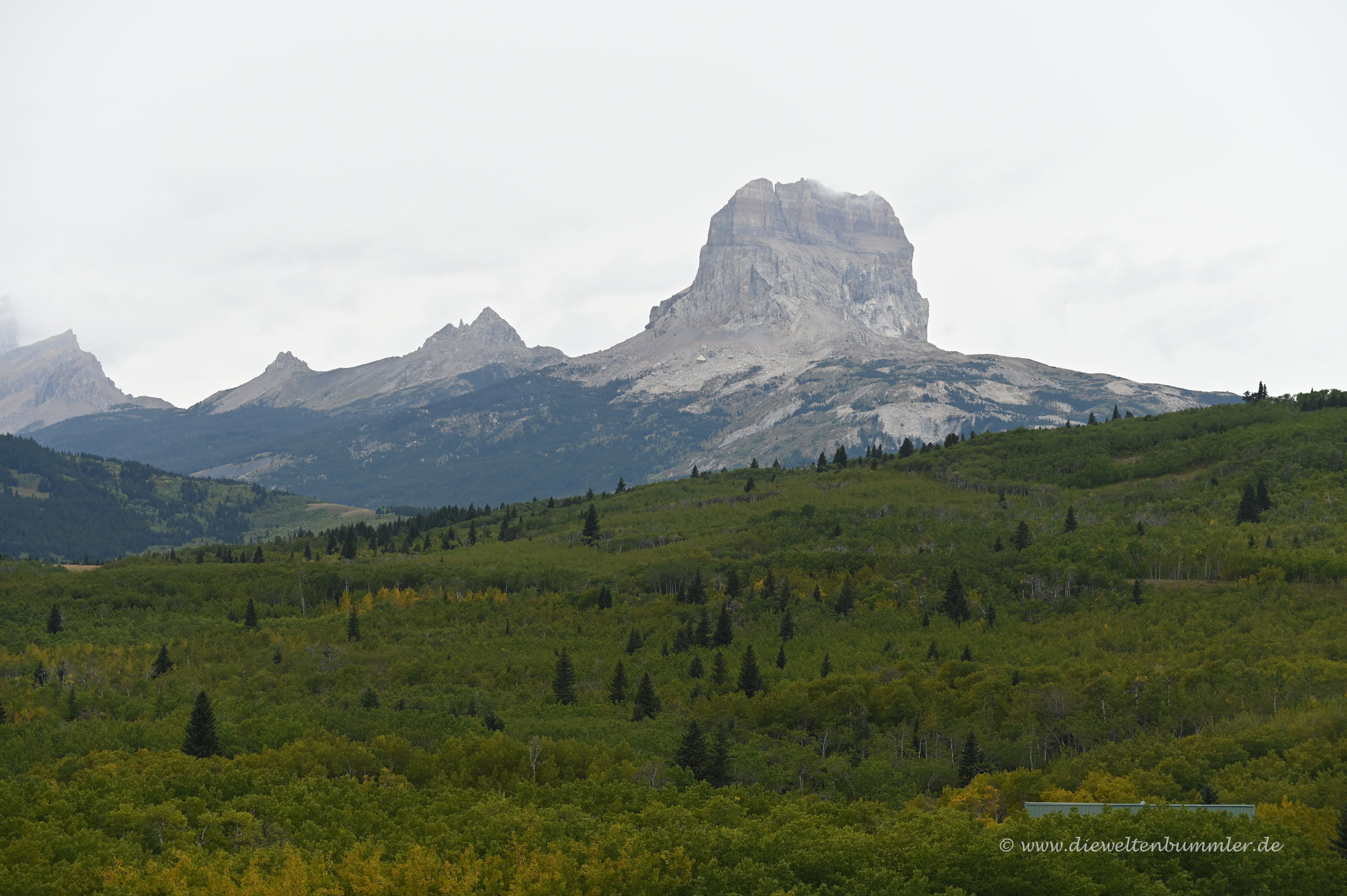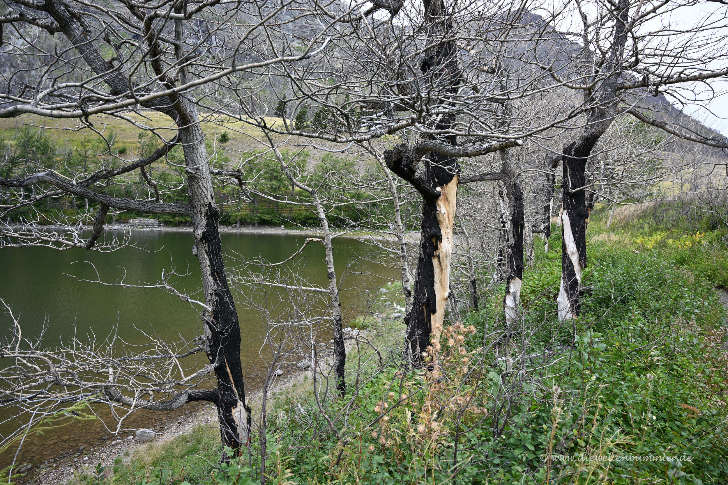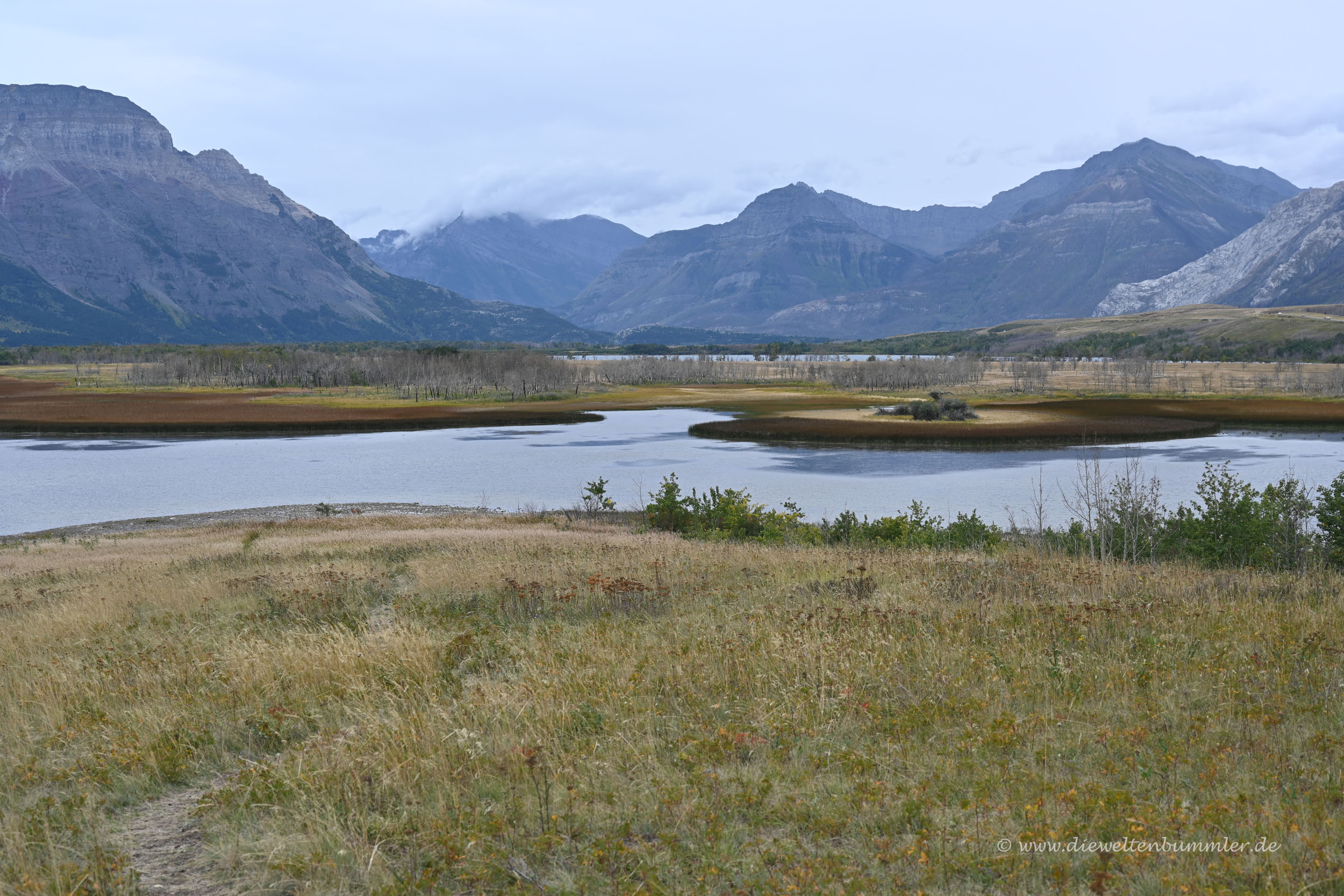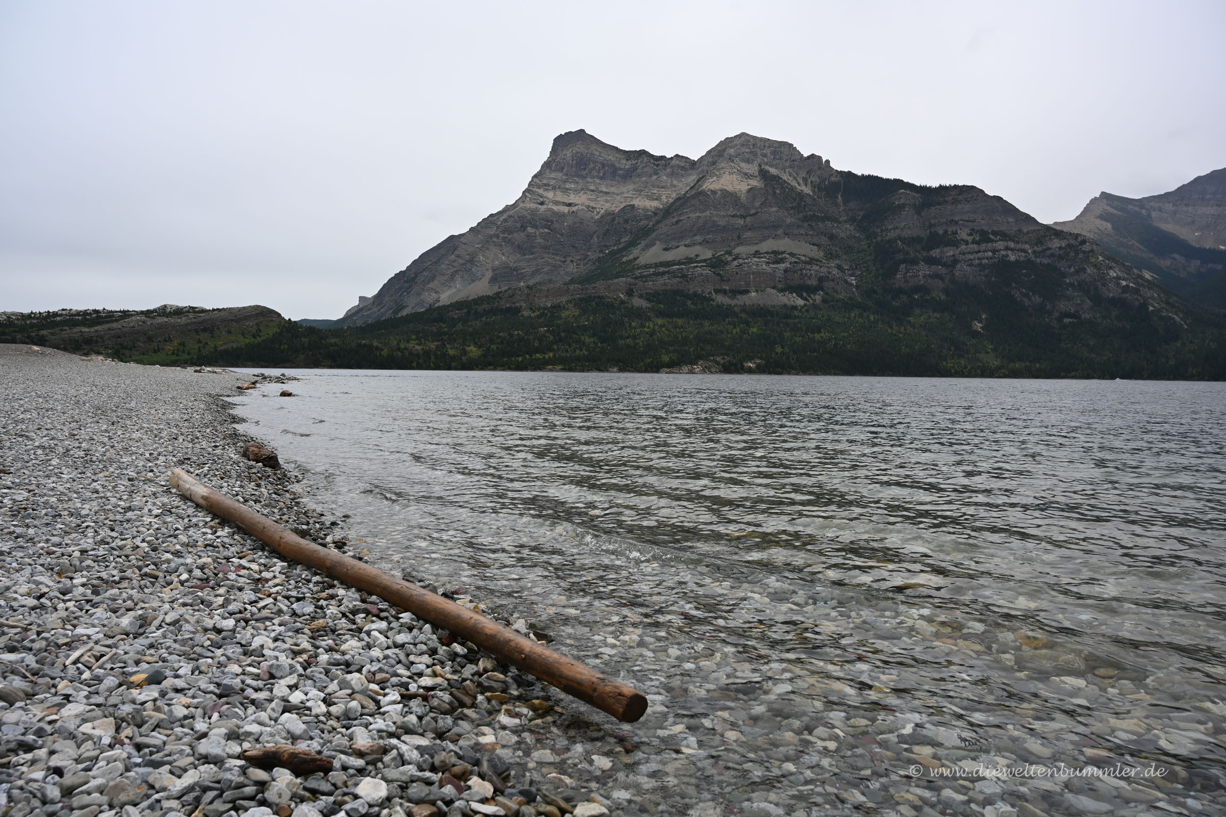 Danach ging es, natürlich wieder gegen Gebühr, in den Nationalpark hinein. Wie ich schon in einem früheren Teil dieses Reiseberichts schrieb, lohnte sich für uns keine Jahreskarte, da wir eben nur in vier kostenpflichtigen kanadischen Nationalparks unterwegs waren. Waterton Lakes war nun der vierte und überraschte uns mit einer gewissen Trostlosigkeit. Einerseits lag das auch mal wieder am schlechten Wetter und den tief hängenden Wolken. Aber andererseits spürten wir, dass hier irgendetwas nicht so ist, wie es sein sollte.