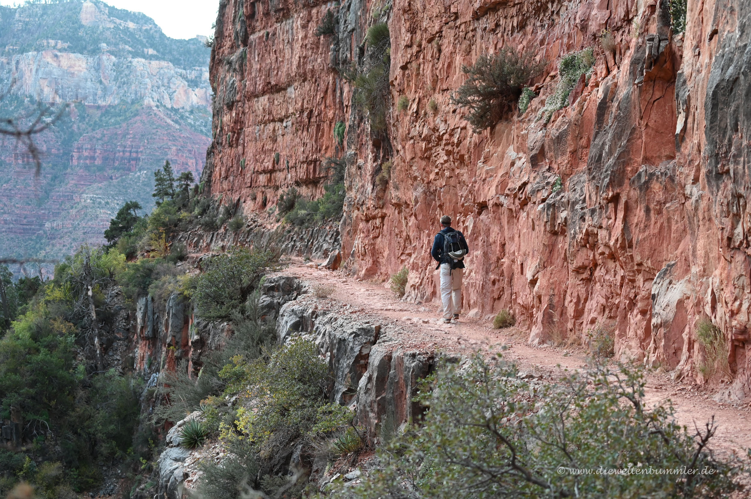 Zum South Kaibab Trail kann ich mangels Erfahrung nichts sagen, da wir uns beim Aufstieg für den Bright Angel Trail entschieden. Doch für diesen Aufstieg gibt es einen weiteren Blog-Artikel. Hier geht es jetzt nur um den Abstieg vom North Kaibab Trail. Es sind über 1.700 Höhenmeter, die es dabei zu überwinden gilt. Da es auf der Südseite nur 1.300 Höhenmeter sind, war das schon mal unser erstes Kriterium für die Wahl der Gehrichtung. Uns war es lieber, mehr bergab zu gehen als bergauf.