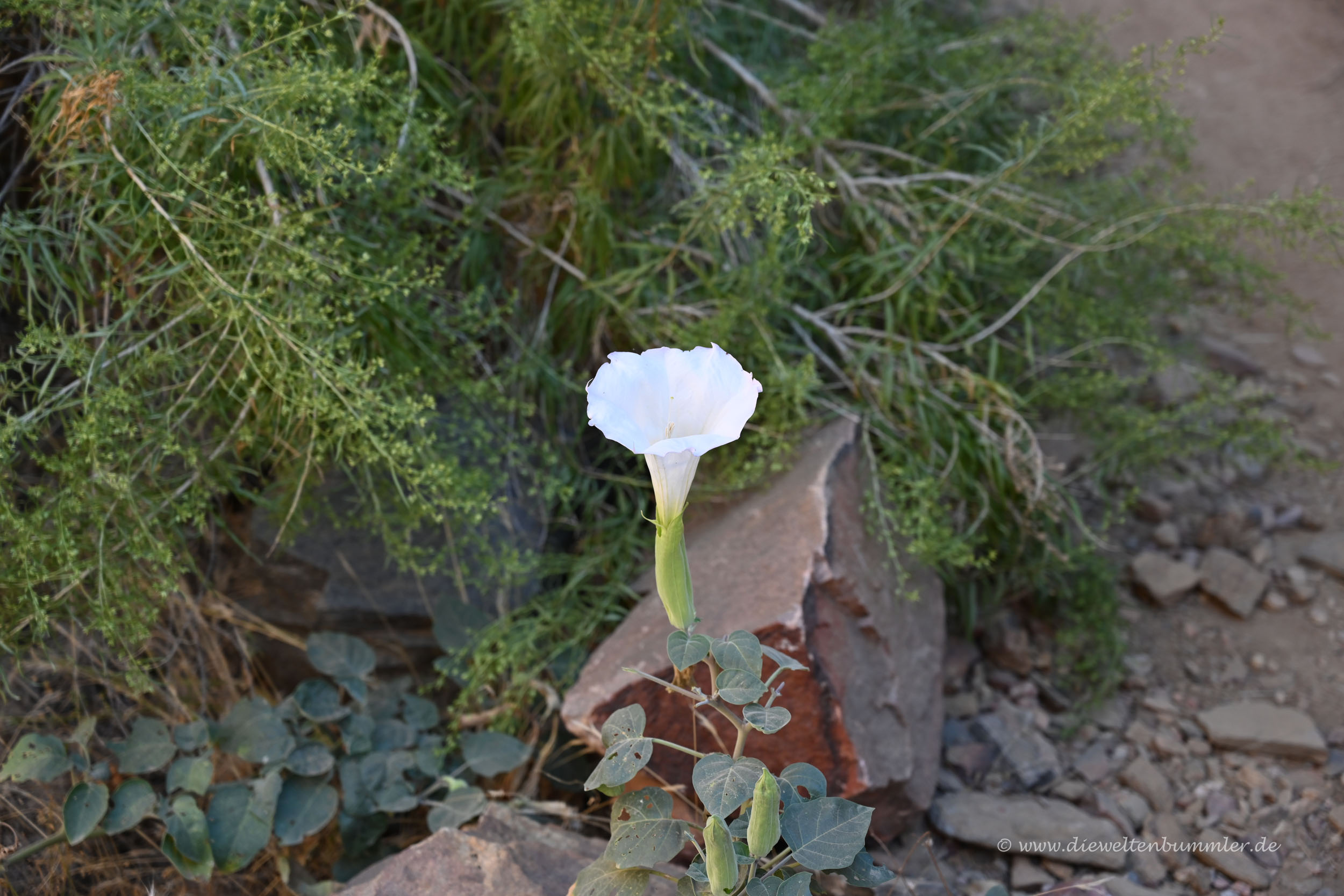 Unser nächstes Zwischenziel ist der Cottonwood Campground. Von der Pumphouse Ranger Station bis zum Campingplatz ist es ein gemütlicher Spaziergang am Wasser entlang. Ein paar Kakteen wachsen am Wegesrand, die Sonne scheint mittlerweile in den Canyon hinein und der Weg ist extrem gut ausgebaut, so dass man sich hier wirklich gut der Natur oder dem Fotografieren widmen kann. Wir brauchten für die Strecke von der Pump House Ranger Station bis zum Cottonwood Campground etwas weniger als eine Stunde. Um auf dem Campingplatz übernachten zu können, muss man sich im Vorfeld ein Permit beim Nationalpark holen. Wie der genaue Ablauf hierfür ist und wie lange man das im Voraus organisieren muss, vermag ich nicht zu sagen. Wir brauchten es ja eben nicht, sondern zogen schweigend an den kleinen, gemütlich wirkenden Parzellen vorbei.