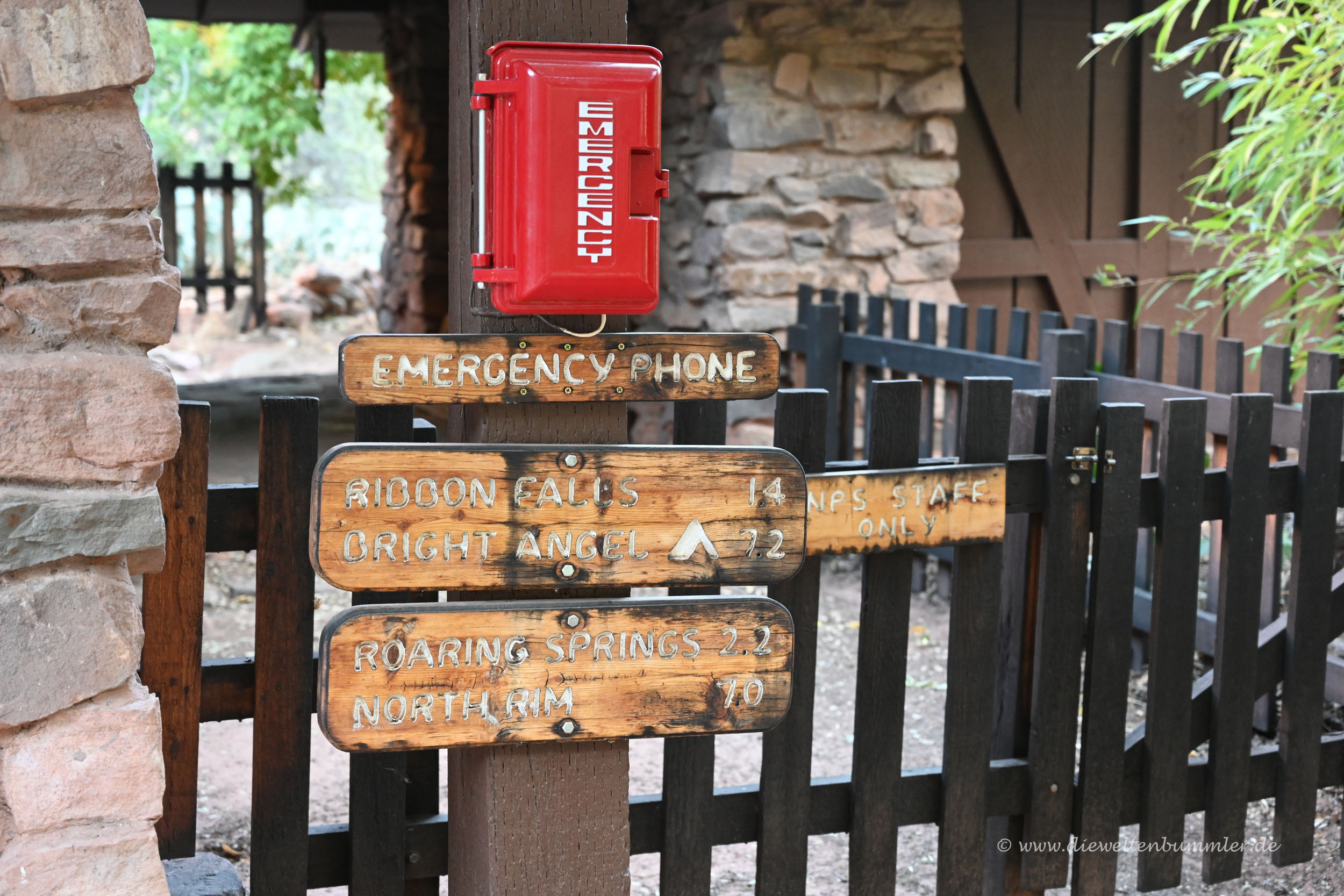 Daher gingen wir direkt weiter und steuerten den nächsten Punkt an, die Pump House Ranger Station. Bis Roaring Springs brauchten wir gut zwei Stunden, hatten hier aber schon das Schlimmste an Abstieg hinter uns. Jetzt ging es noch schnell zur Pump House Ranger Station und von dort an würde die Talwanderung deutlich harmloser verlaufen. 20 Minuten ist man zwischen den beiden Stationen gerade einmal unterwegs. Das ist also keine große Entfernung.