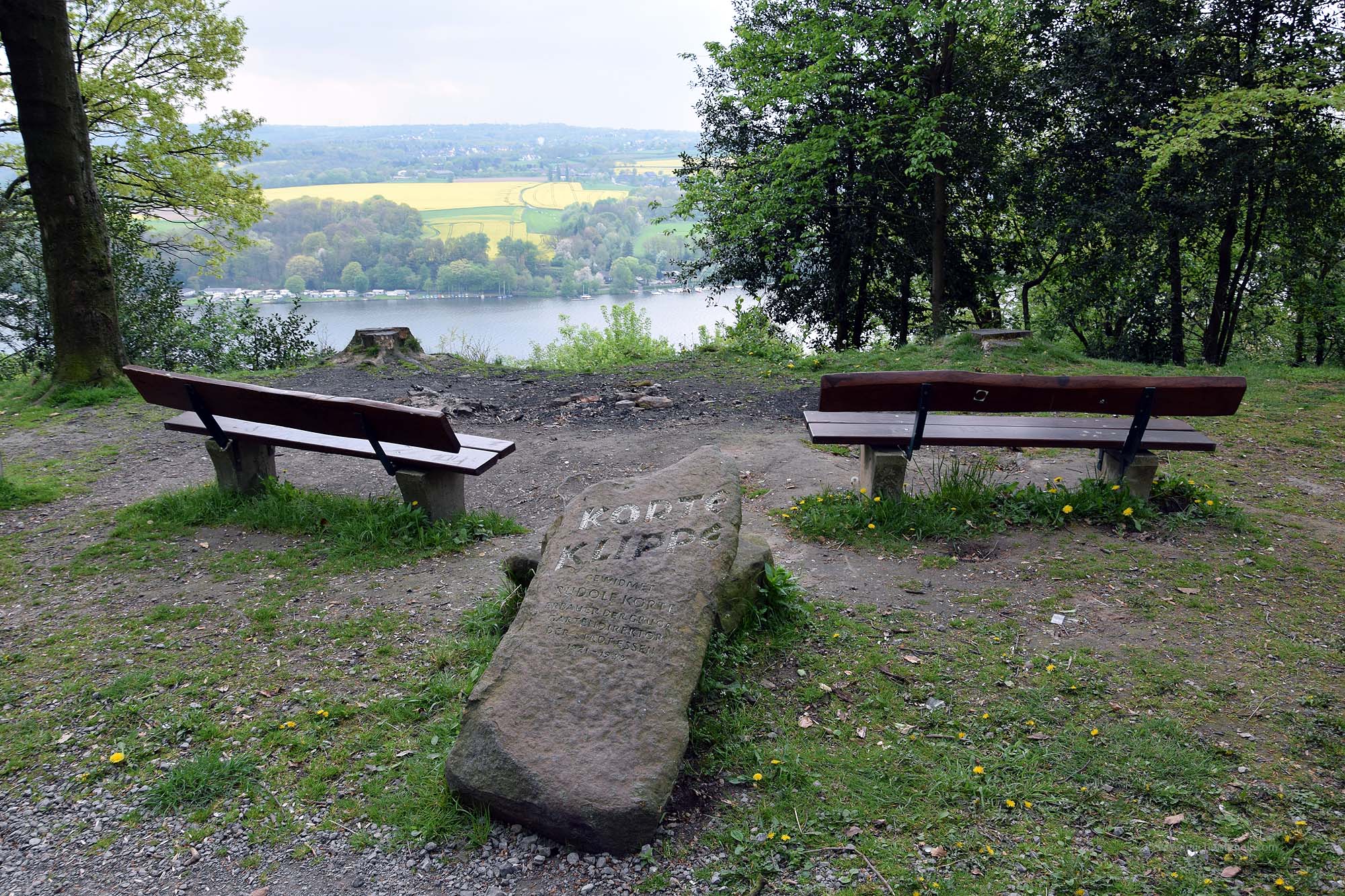 Zum Verweilen lädt auch die Korte Klippe ein, womit wir dann doch beinahe wieder zum Baldeneysee zurückkehren. Zumindest genießen wir von der Korte Klippe die Aussicht auf den Stausee, der weit unterhalb des Schellenberger Waldes liegt, in dem wir nach einem kleinen Spaziergang den Aussichtspunkt erreichen. Er ist einer der wenigen Orte, von denen aus man den fast den gesamten See überblicken kann.Übrigens: Nur wenige Meter entfernt, habe ich letztens bei der Krötenwanderung geholfen (51.408282, 7.041574).