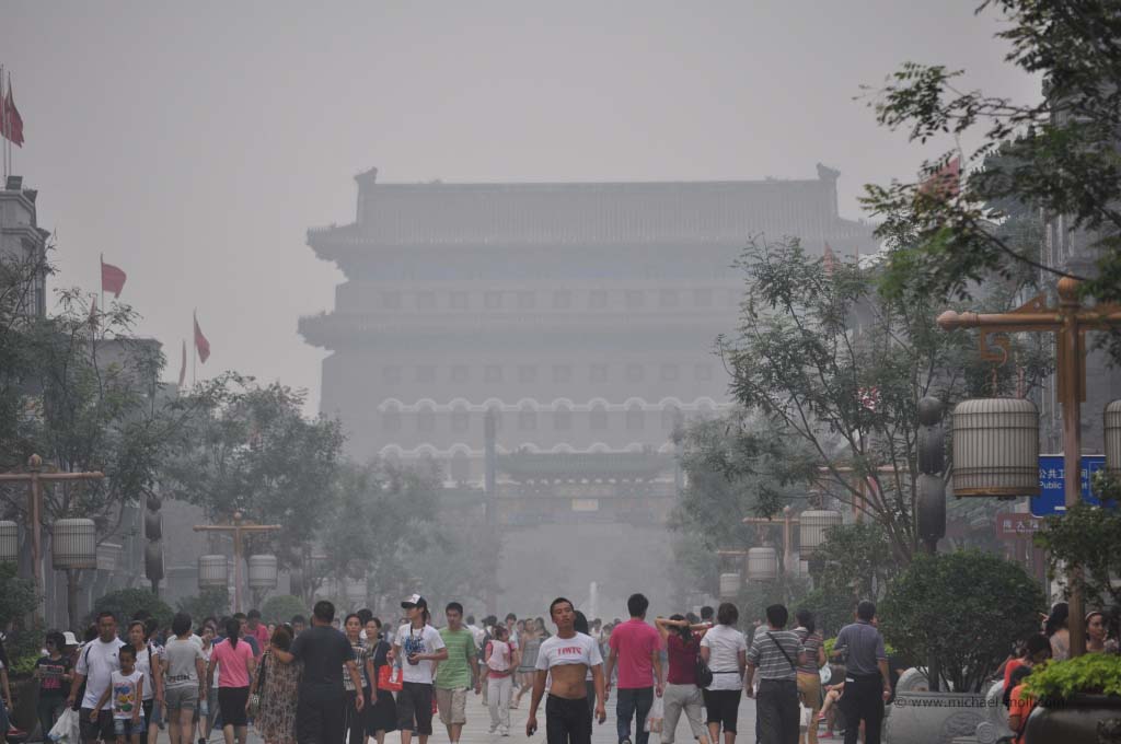 Wir blieben nicht lange und schlenderten über die Hauptstraße lieber zum Gelände des Neuen Sommerpalastes. Auf dem Weg dorthin sahen wir einen Reisebus der komplett mit Werbung für Norwegen vom norwegischen Tourismusamt beklebt wurde, visitnorway.cn war deutlich zu lesen. Meine Güte, was für schöne Bilder von sauberer Natur, umhüllt vom Pekinger Smog.