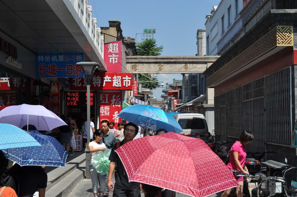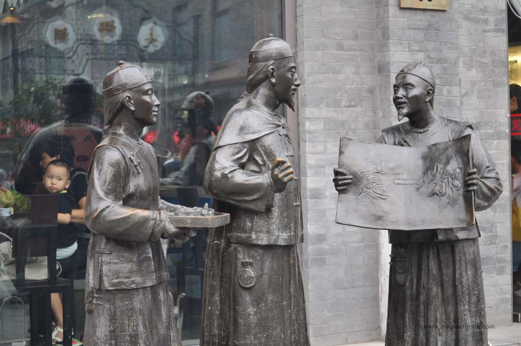 Wenn man Peking wirklich mit einer Art Disneyland vergleichen würde, dann wäre die Qianmen die Mainroadm, die normalerweise hinter dem Eingang beginnt und auf das Cinderellaschloss zuführt. Und so war es auch. Die Qianmen trifft an ihrem Nordende auf das einstige Stadttor, direkt dahinter breitete sich der Platz des Himmlischen Friedens aus, auf dem sich wiederum das Maomausoleum befindet und gleich dahinter kommt ja auch schon die Verbotene Stadt.