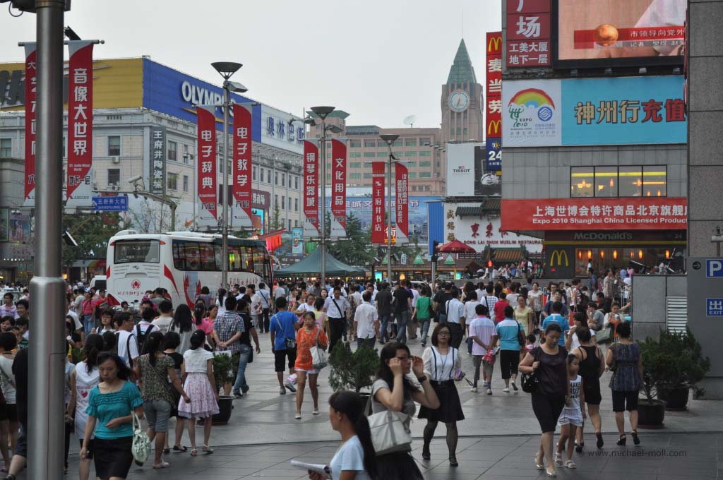 Abends verabschiedeten wir uns von den liebgewordenen Dingen wie der Bäckerei Weiduomei, dem benachbarten Restaurant sowie der Einkaufsstraße Wangfujing.