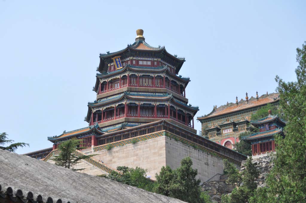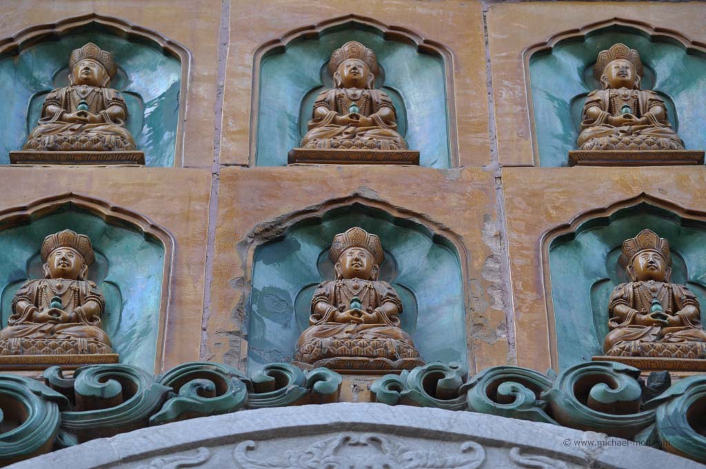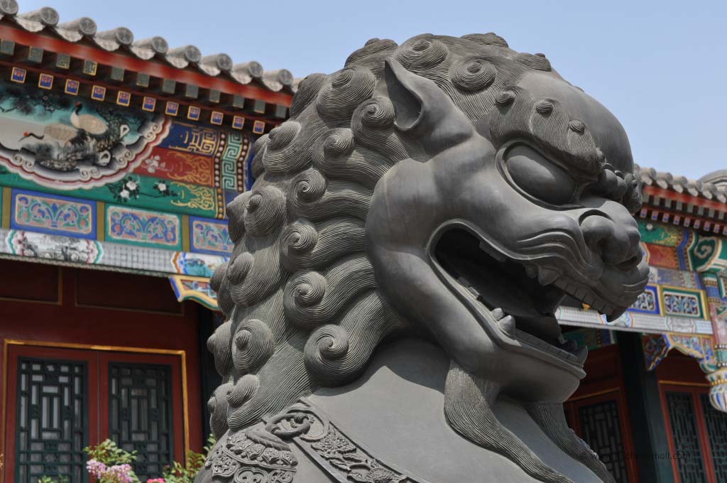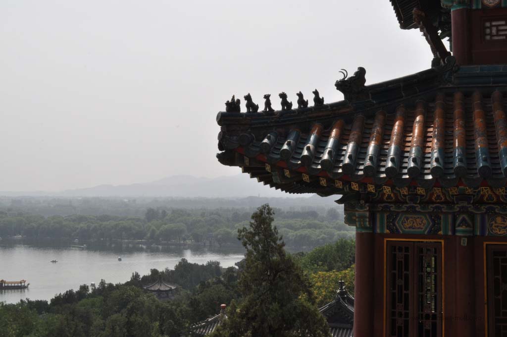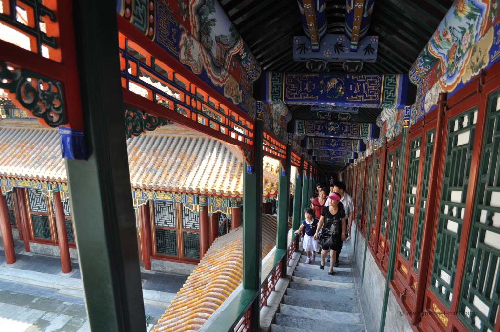 Wir entschieden uns dafür am Rande des Platzes in Ruhe entlang zu schlendern und hatten kurioserweise ausgerechnet in der Verbotenen Stadt den meisten Platz um uns herum. So viel Platz hatten wir in ganz Peking nicht mehr für uns. Wir durchschritten Tempel für Tempel, Hof für Hof und machten zahlreiche Bilder. Besonders die liebevollen Details hatten es uns angetan. Bunte Ornamente an den Wänden und kleine Figuren am Dachgebälk. Wobei mich die vorderste Figur immer an Dr. Dressler aus der Lindenstraße erinnerte. Der nördliche Bereich der Verbotenen Stadt war stark verwinkelt und demnach sehr voll. Da sich für unsere westlichen Augen die Tempel irgendwann wiederholten, beschlossen wir nach vier Stunden ausgiebiger Besichtigung die Verbotene Stadt wieder zu verlassen. Natürlich nicht, ohne vorher noch ein paar Worten einer deutschen Reiseleitung zu lauschen, die aber unsagbar langweilig war.