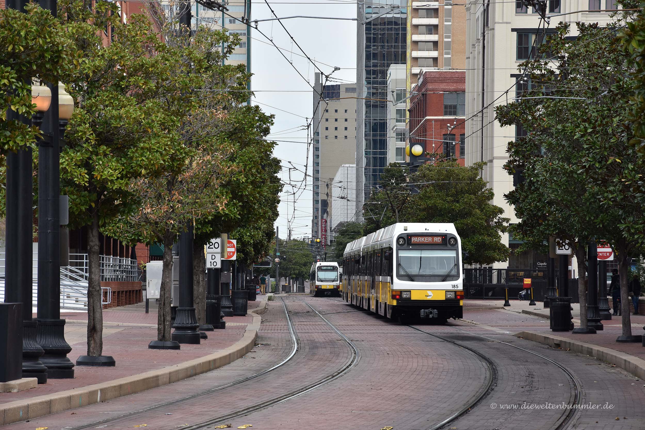 Ich ging von dort einen Block weiter und fand einen anderen Parkplatz, der nicht nur näher an unserem Ziel lag und das gleiche kostete, sondern auch deutlich belebter war. Also stellten wir schnell das Auto um und gingen die letzten paar Meter zu Fuß. Wir überquerten ein Straßenbahngleis, was für uns Europäer eigentlich normal ist, angesichts der Lage in Amerika trotzdem ungewöhnlich erschien und waren kurz darauf an der Elm Street.