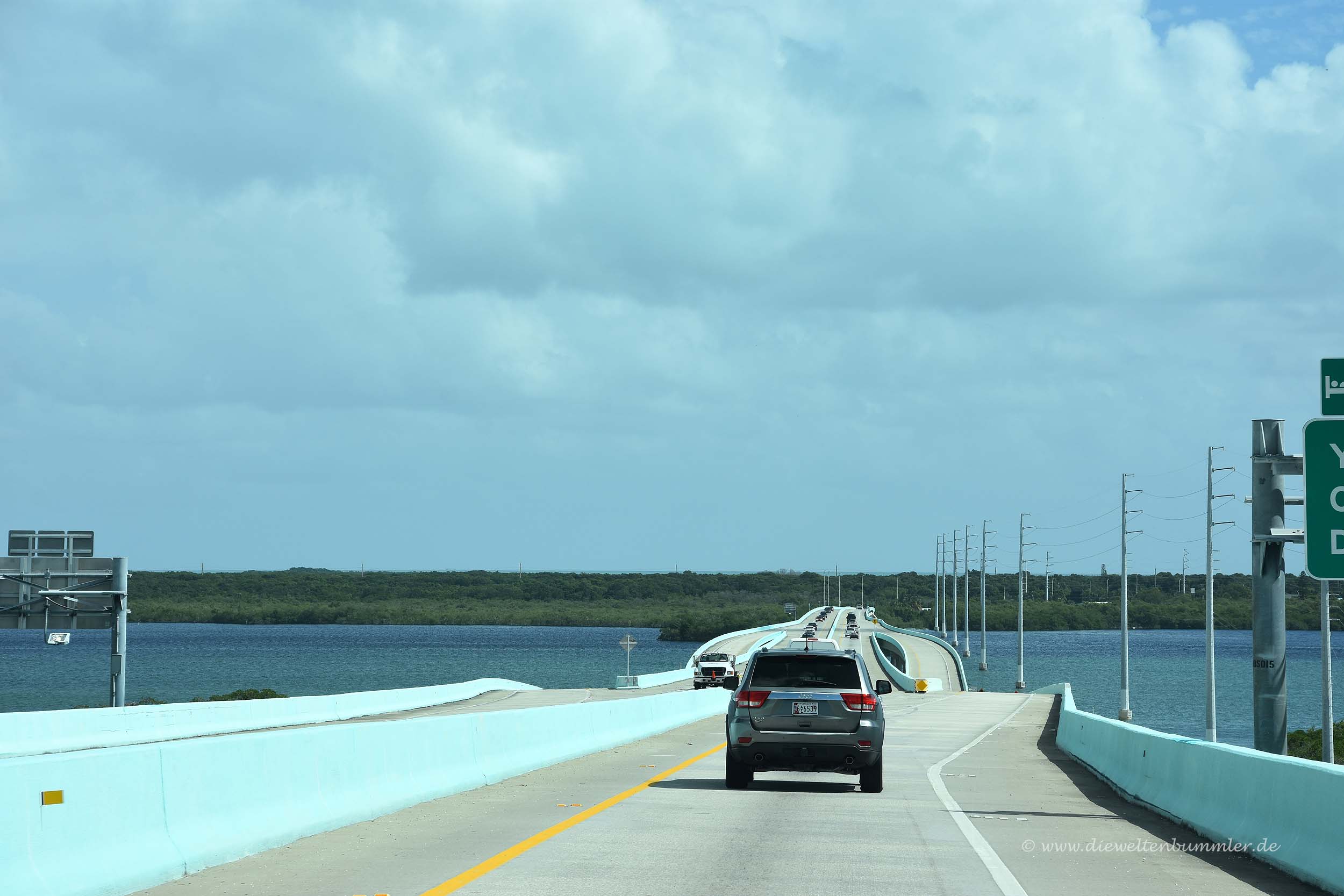 Südlich von Homestead gelangten wir auf den Highway 1, dem wir nun über die Inselkette der Keys nach Key West folgten. Am Anfang war alles noch recht unspektakulär und bis zur Islamorada gefiel es uns auch nicht so dolle. Es gab nämlich einfach nichts zu sehen. Wir nahmen an, wenn wir über schmale Inseln fahren, dann würden wir rechts und links immer wieder mal das Meer sehen können. Dem war jedoch nicht so. Es gab nämlich nur Bebauung, die hin und wieder von hohen Ecken unterbrochen wurde. Das Meer konnten wir nur sehen, wenn wir auf einer der Brücken unterwegs waren, die die Inseln miteinander verbanden.