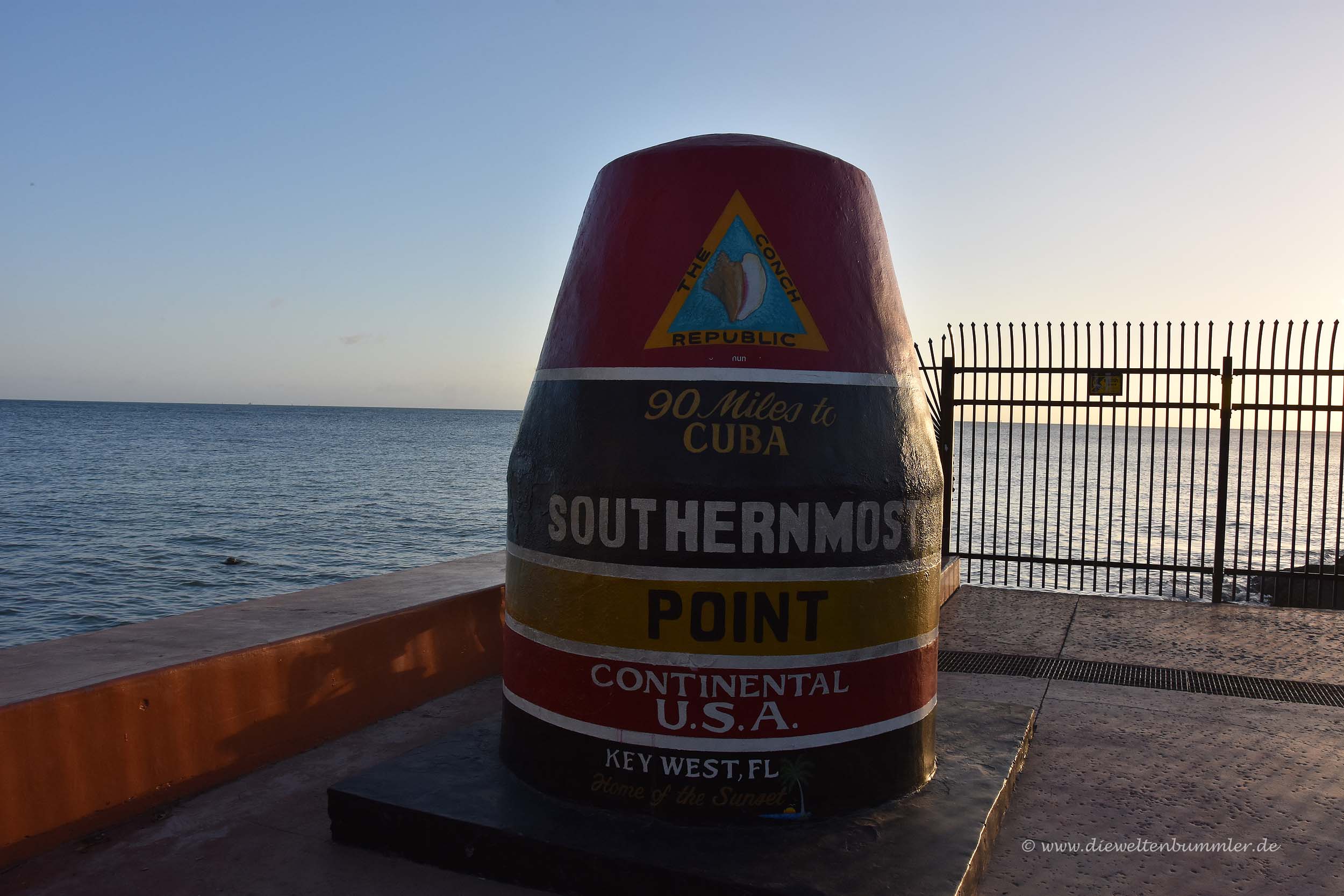 Unser erstes Ziel war jedoch der südlichste Punkt der Vereinigten Staaten. Dafür trugen wir sogar Pingu durch die Straßen von Key West. Solche Extrempunkte besuchen wir ja immer wieder mal, wenn sich die Gelegenheit dazu ergibt. Wir waren erst ein bisschen falsch und landeten an irgendeinem kleinen Strand, doch einen Block weiter gab es dann die offizielle Markierung für den südlichsten Punkt der USA.