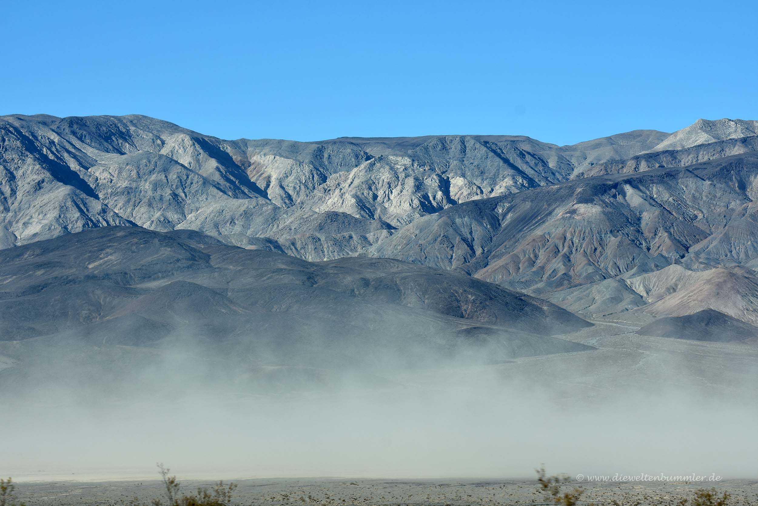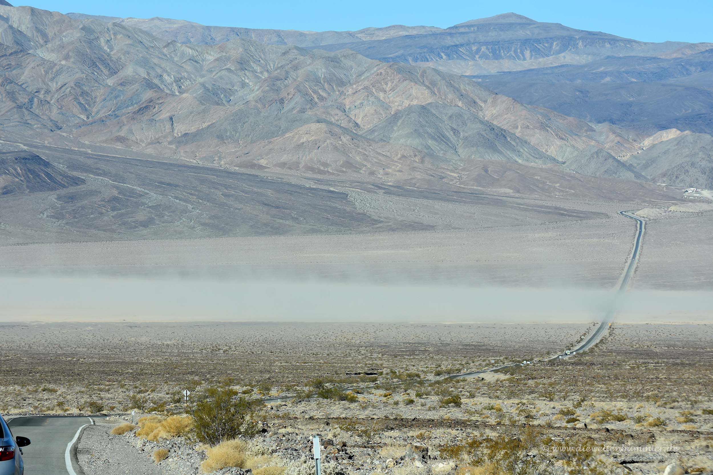 Über den Towne Pass fuhren wir am nächsten Morgen wieder in die Tiefebene, die wir bereits kannten. Natürlich genossen wir dabei die Ausblicke, hielten immer mal wieder an und fuhren auf der westlichen Seite des Tals wieder bergauf. Damit überwanden wir zwei Mal kurz hintereinander einen Höhenunterschied von jeweils rund 1.000 Metern.