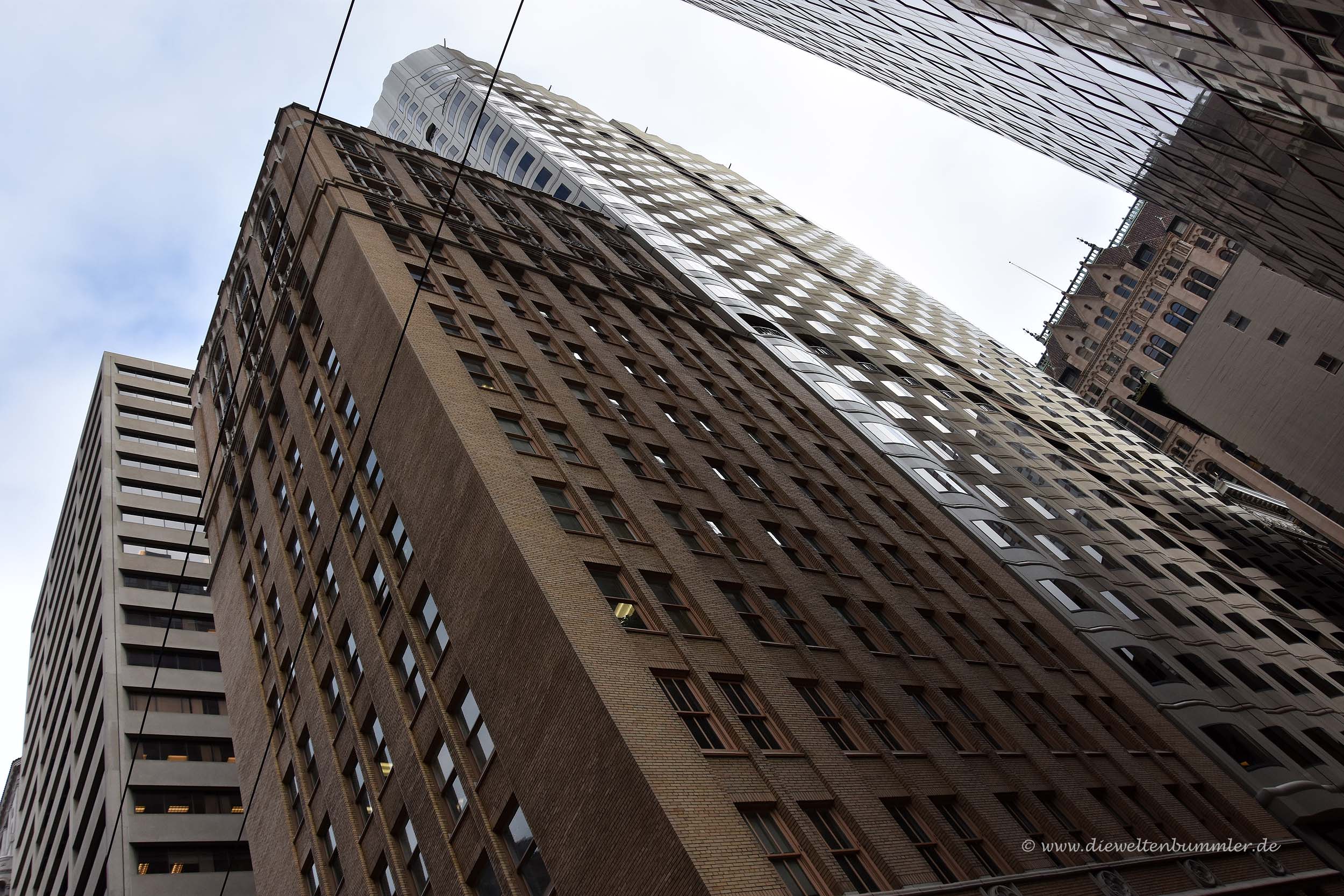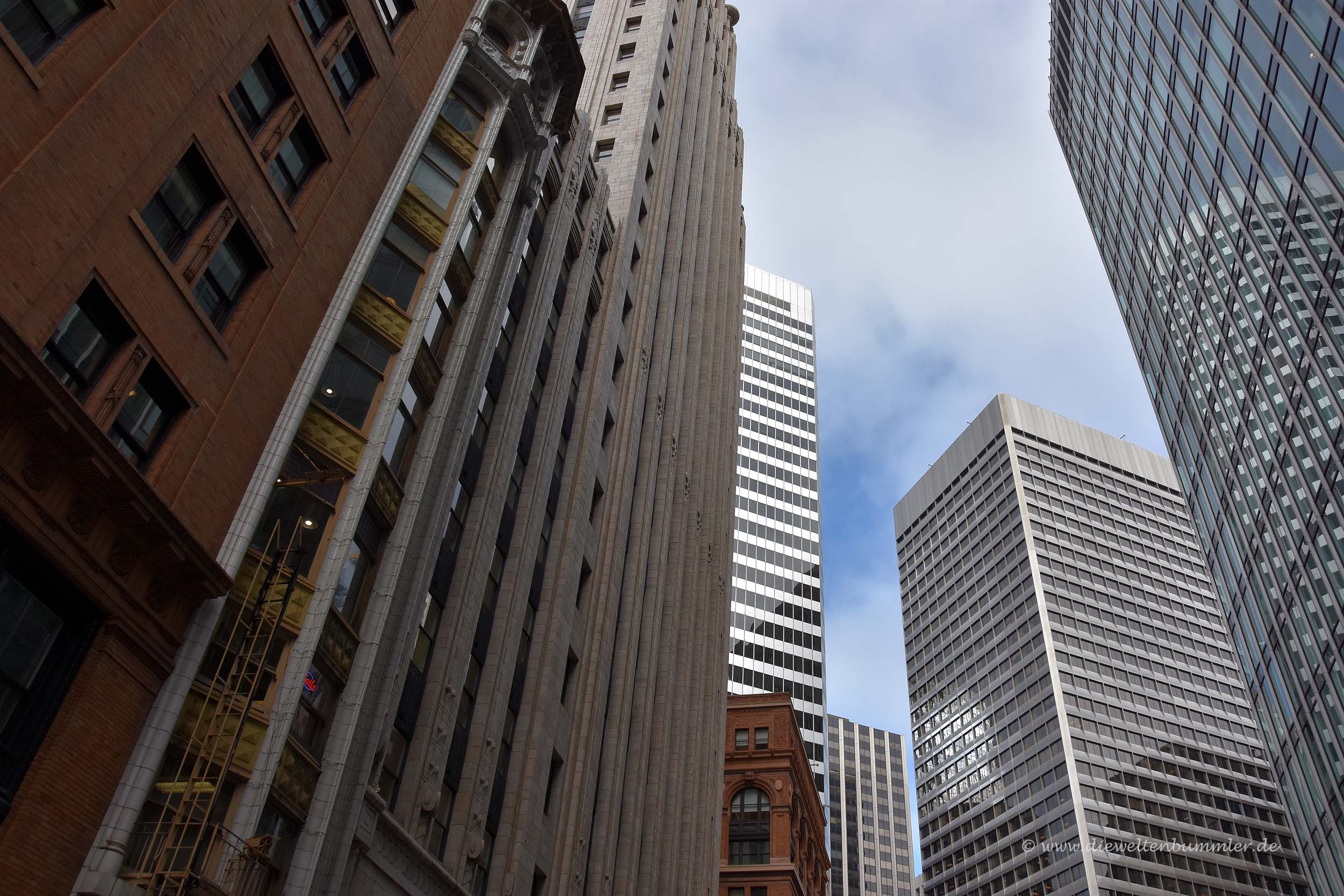Das Hafenviertel Fisherman’s Wharf mit seinen überwiegend gastronomischen Angeboten und Geschäften interessierte und indes weniger. Wir hatten eigentlich gesehen, was wir sehen wollten. Daher starteten wir den Motor und fuhren mit einem kleinen Umweg durch das Finanzdistrikt am späten Nachmittag wieder in Richtung Bay Bridge.