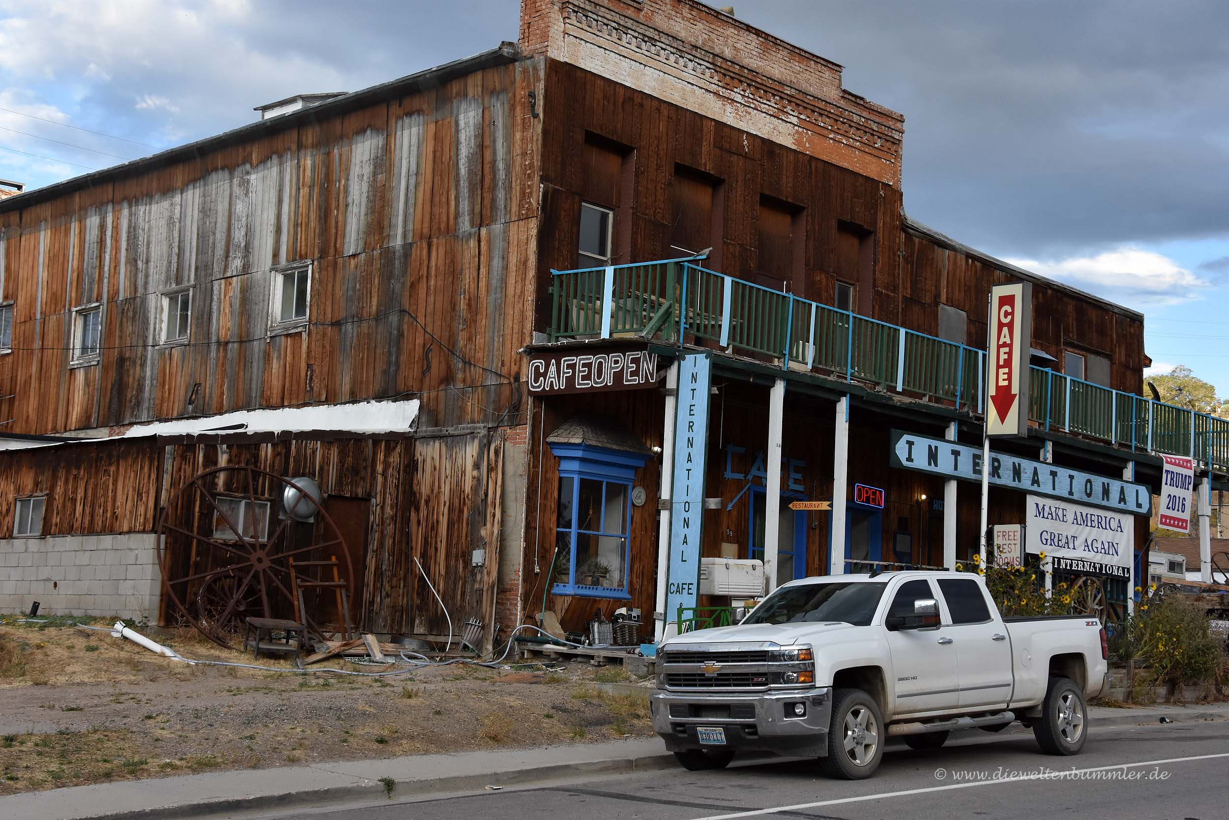 Durch die weite Landschaft erreichten wir am Nachmittag die Siedlung Austin. Diese Ortschaft hatte es offensichtlich nicht leicht und wirkte wie ein sterbender Ort. Alte verfallene Häuser reihten sich aneinander und viele Geschäfte sowie die kleine Bücherei standen schon lange leer. Es war kein Ort, an dem man lange bleiben wollte. Allerdings tat es uns gerade deswegen leid, dass wir in dem kleinen Motel von Austin waren und nur noch einem Stempel für unser Heft fragten. Aber dieses Motel war nun mal die offizielle Stempelstation von Austin und warb auch groß damit. Doch bleiben wollten wir hier wirklich nicht.