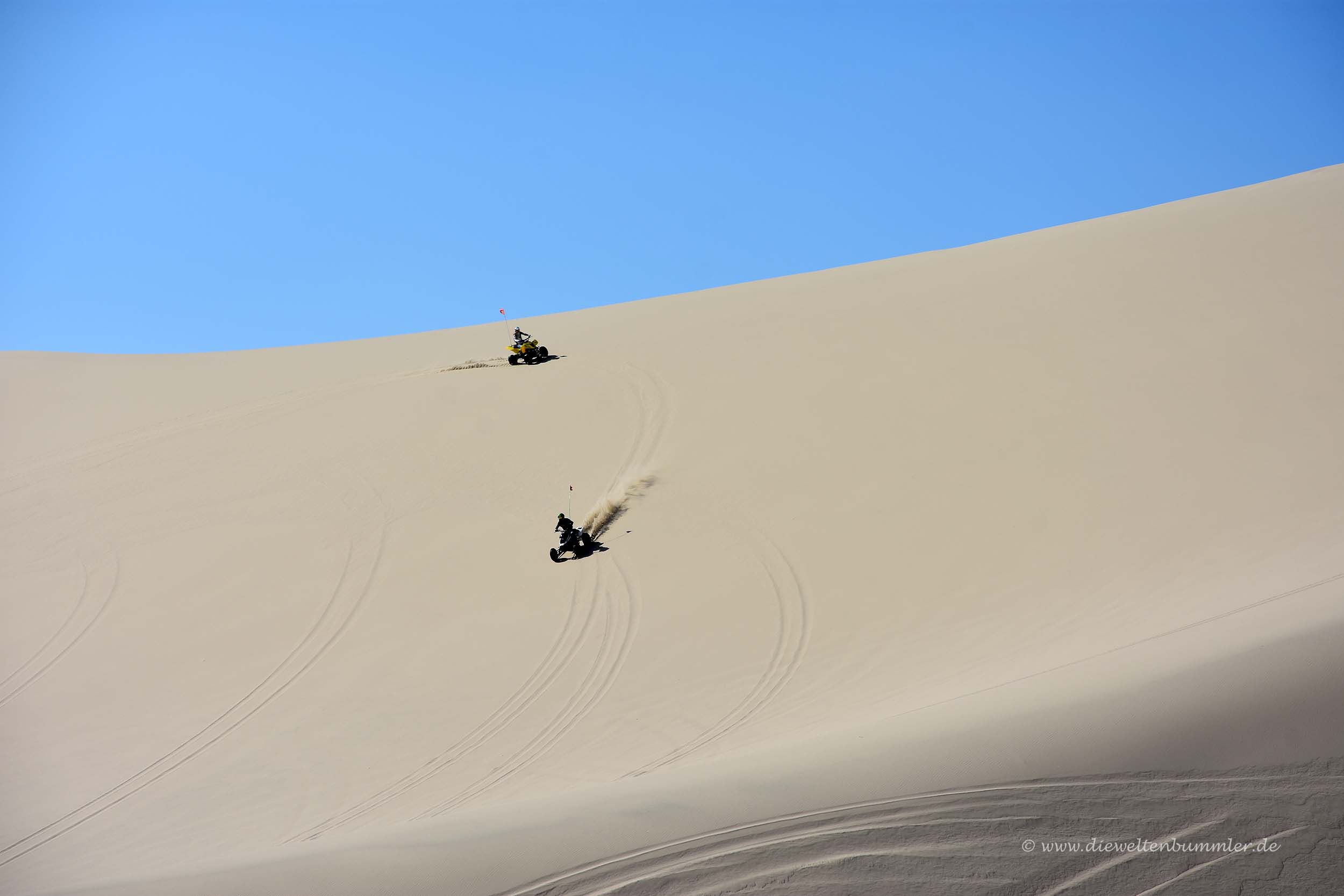 Ein paar Scooterfahrer drehten ihre Runden auf der Düne, was natürlich wieder typisch amerikanisch ist. Sobald man etwas mit einem Motor machen kann, macht man es. Einerseits dachte ich mir, wie schade das für die Wüste ist, wenn hier lärmend drüber gefahren wird. Aber andererseits waren wir hier mitten in der Wüste.