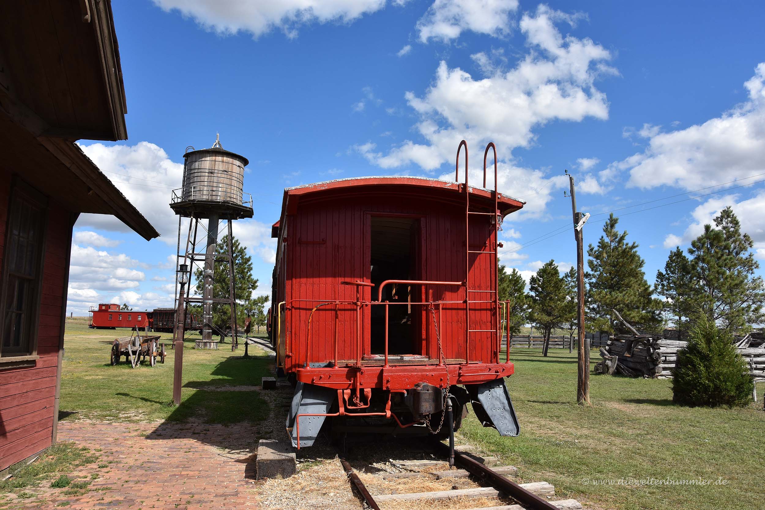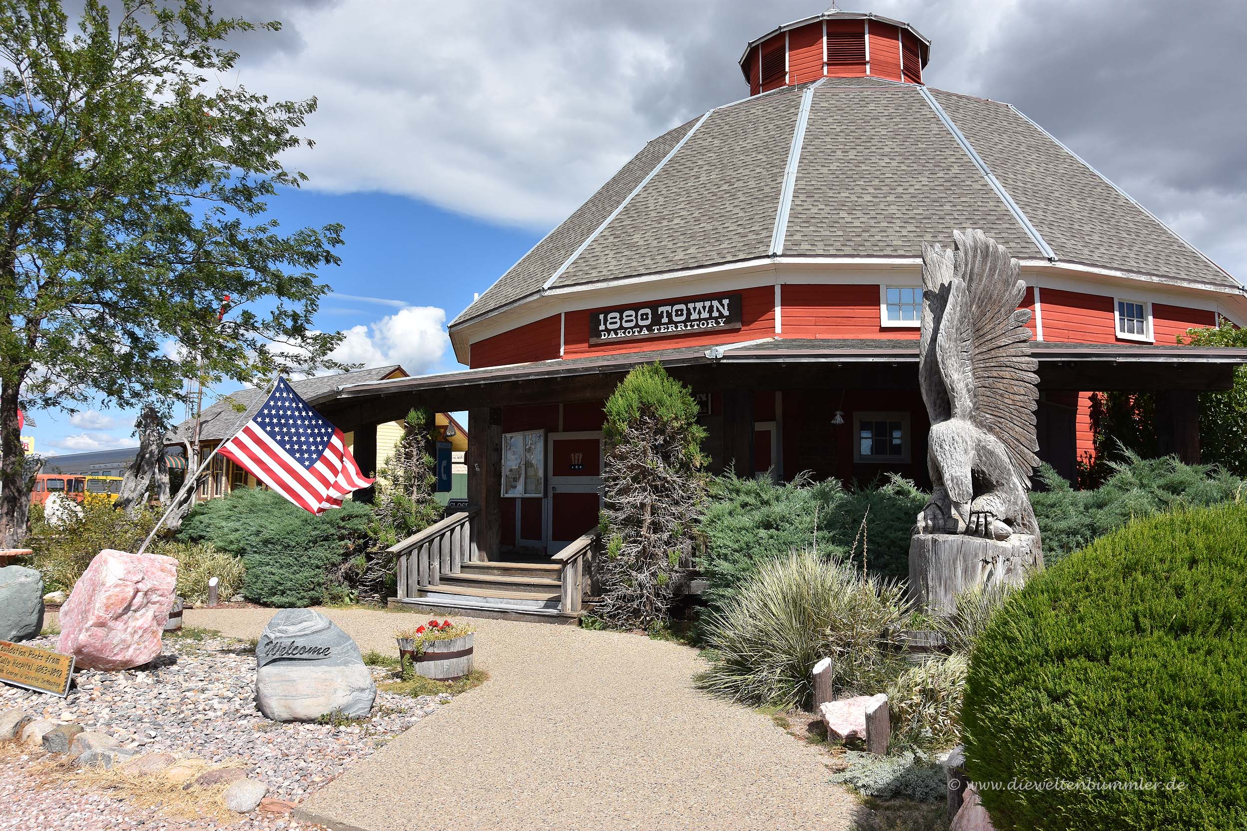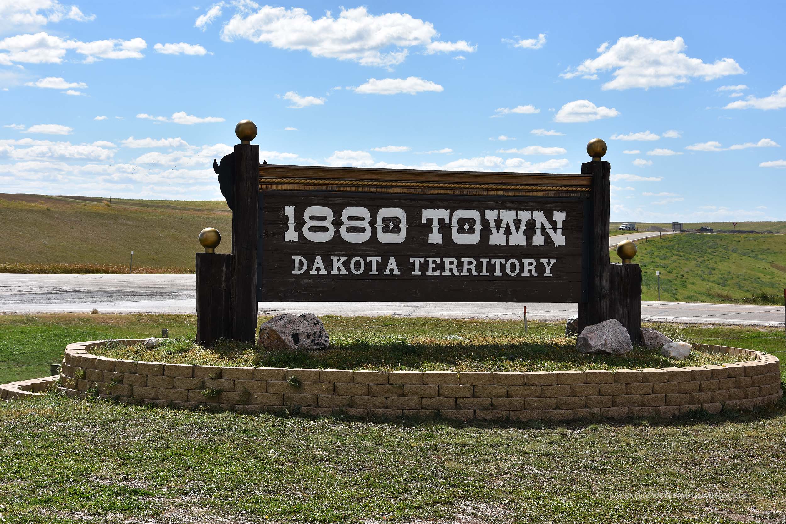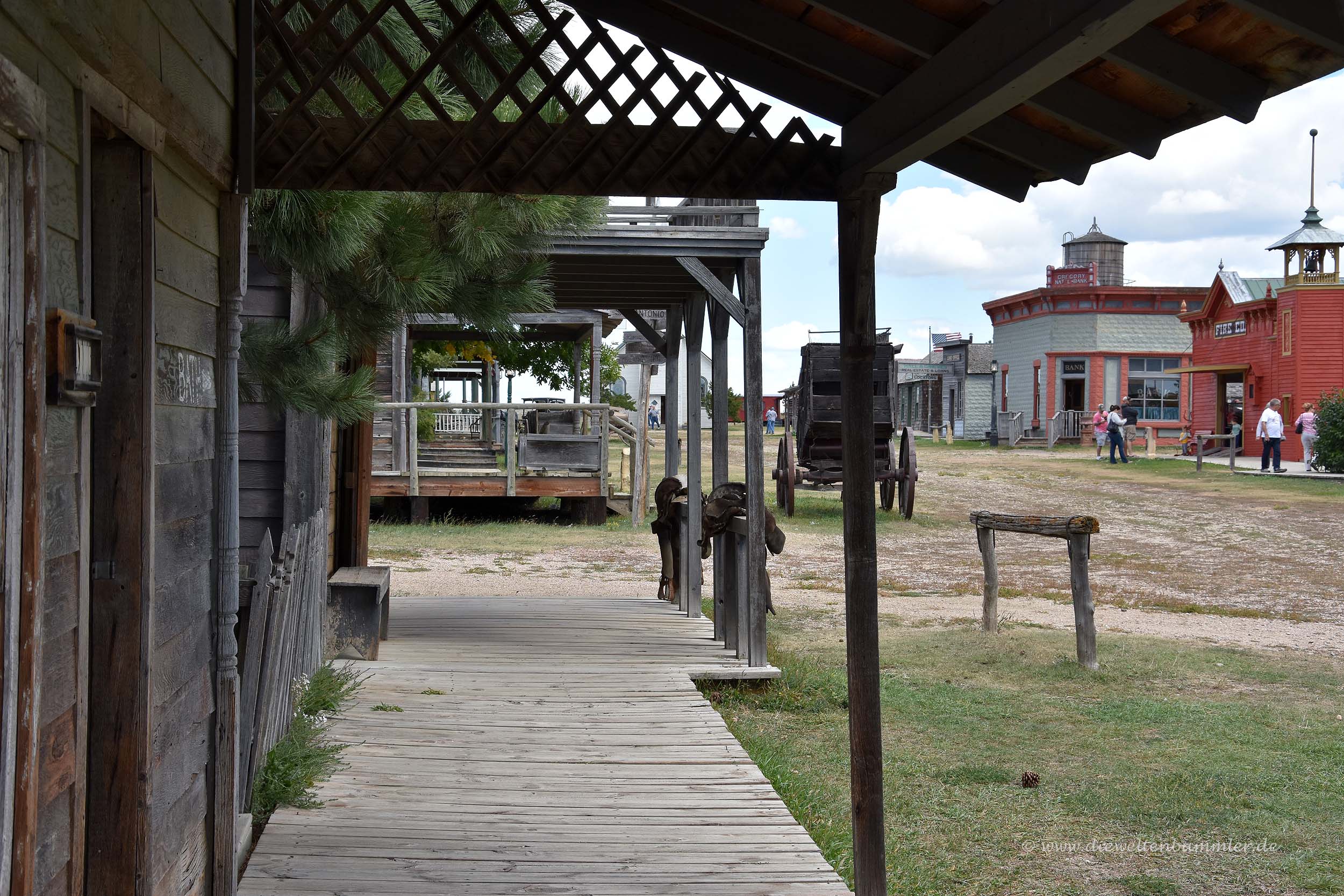 Auf Grund der Beschilderung und des Namens konnten wir uns schon denken, um was es dabei ginge. Eigentlich war uns gar nicht danach, eine alte Westernstadt zu besichtigen. Aber andererseits gab es hier in South Dakota nicht viel anderes und man war ja schon froh, wenn das Auge mal etwas anderes zu sehen bekommt. Sonst hat man nur weite Landschaft, die von Prärie und Landwirtschaft geprägt ist, zu sehen.