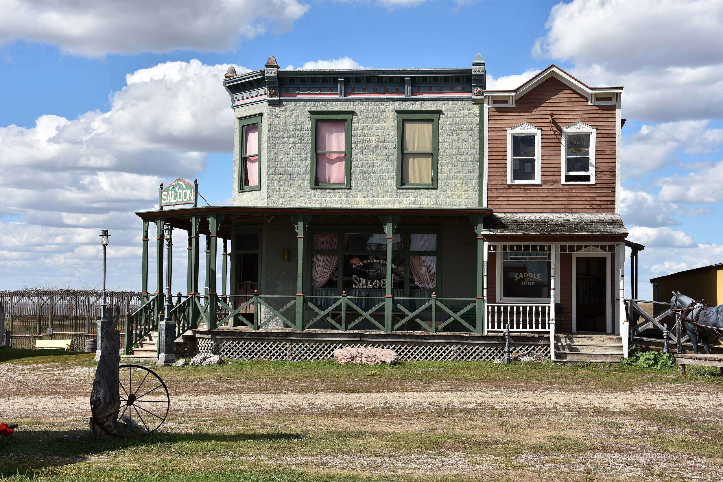 Die 1880er Westernstadt war dagegen ziemlich okay und übertraf sogar unsere Erwartungen. Wir hatten mit mehr Kitsch und Nachbauten gerechnet. Doch vieles wirkte sehr authentisch und wir fragten uns, ob es bei den Holzhäusern nicht eher ein Freilichtmuseum sein dürfte. Doch eigentlich handelte es sich um Filmrequisiten, die in den 1970er Jahren errichtet wurden und die der Eigentümer des Grundstücks schließlich zu einem Museum umwidmete. Man muss schon sagen, dass er das ganz gut hinbekommen hat. Wobei die Lage in der Prärie von South Dakota natürlich auch mithalf, die Szenerie authentisch wirken zu lassen. Besser eine nachgebaute Westernstadt im originalen Wilden Westen als beispielsweise eine Westernstadt irgendwo in der Eifel. Oder so.