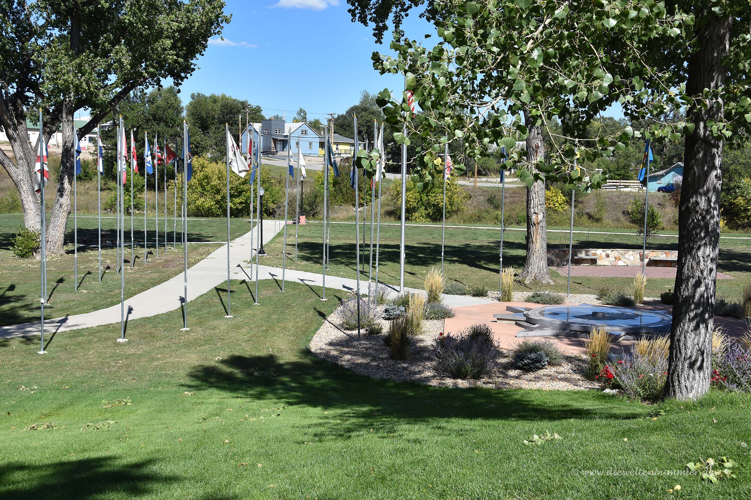 James Buchanan war der letzte Präsident, dem wir einen Besuch abstatteten, bevor wir uns wieder in das Auto setzten und auf der Interstate 90 nordwestlich fuhren. Auf dem Highway 85 ging es dann schließlich nach Belle Fourche, wo sich die Markierung und ein kleines Infozentrum für den geografischen Mittelpunkt der kontinentalen Vereinigten Staaten von Amerika befindet. Natürlich haben wir diesen Mittelpunkt umrundet, so wie wir das immer machen und machten ebenso ein Pingu-Foto von dem Ort.
