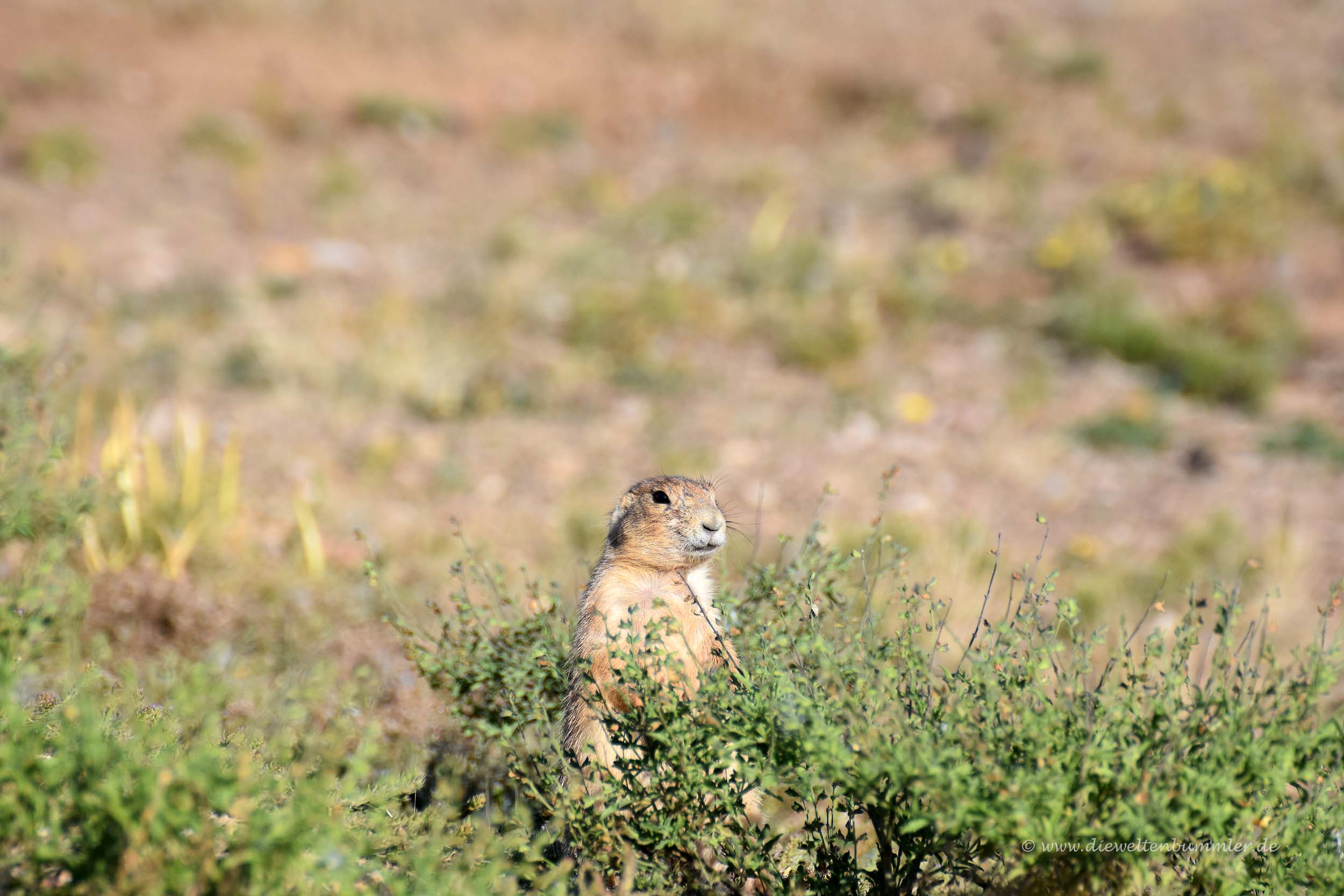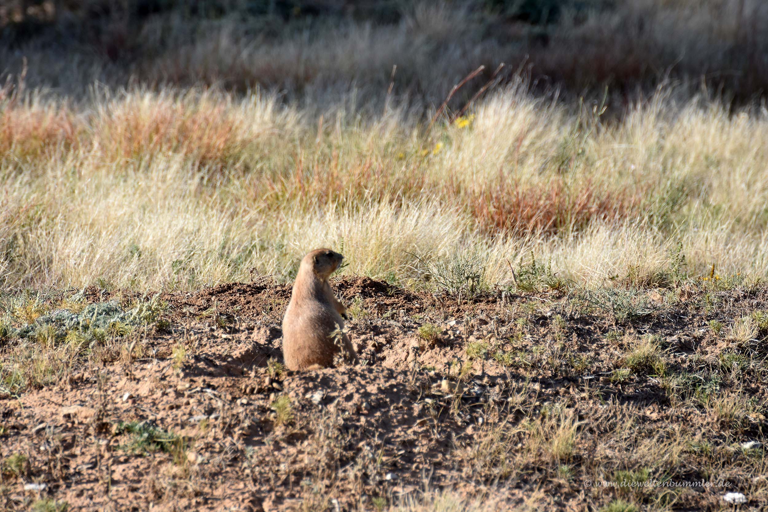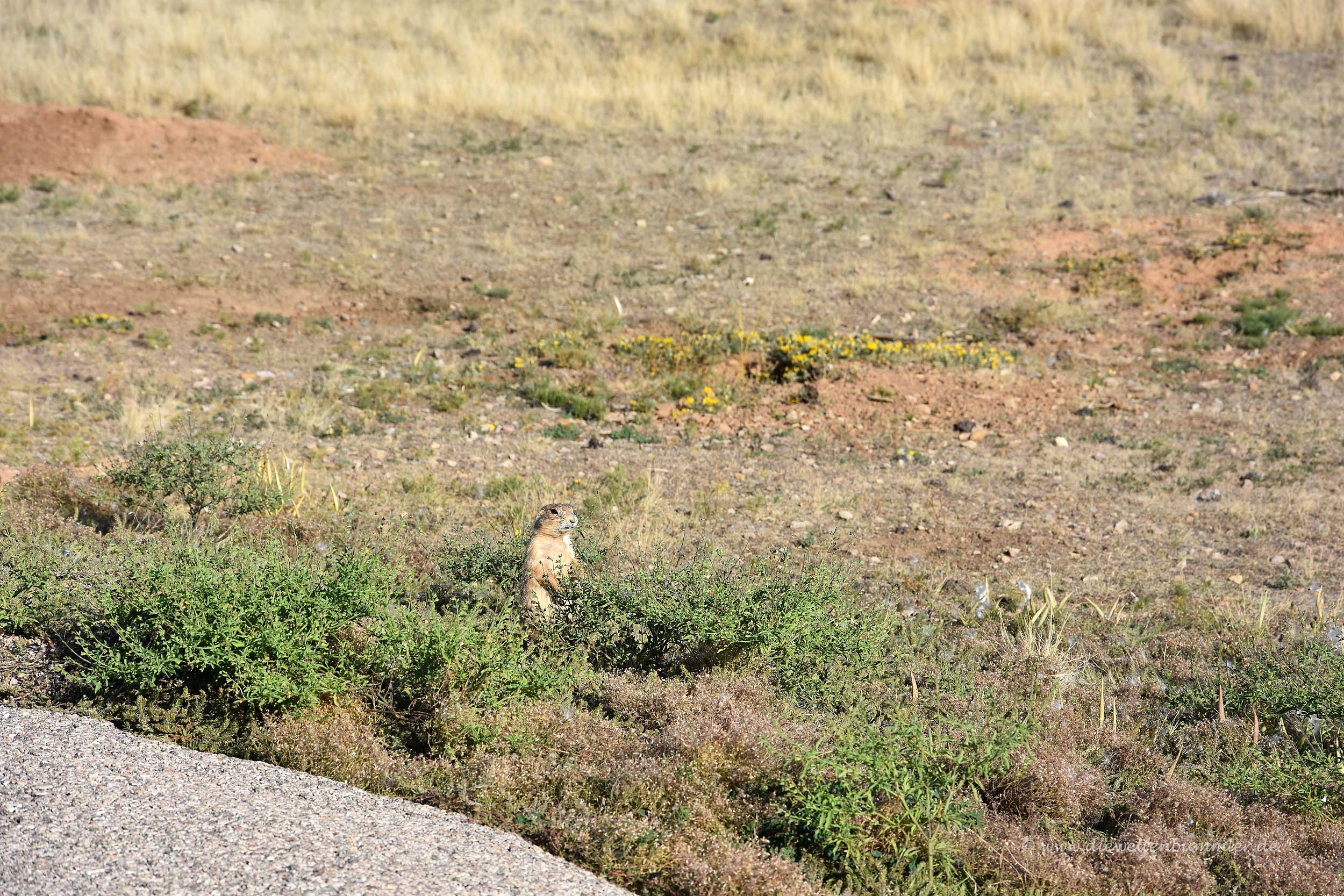 Wir überquerten den kleinen Belle Fourche River und sahen plötzlich auf der linken Seite auf einem steppenähnlichen Gelände kleine pelzige Wesen, für die wir sofort anhielten. Es handelte sich um Präriehunde, die zu Dutzenden das Areal für sich beanspruchten. Manche von ihnen waren sogar ganz nah an der Straße und teilweise völlig unbeeindruckt von uns. Wir freuten uns, dass wir nun schon wieder eine Tierart entdeckten, die es bei uns nicht gibt. Es wurde immer besser.