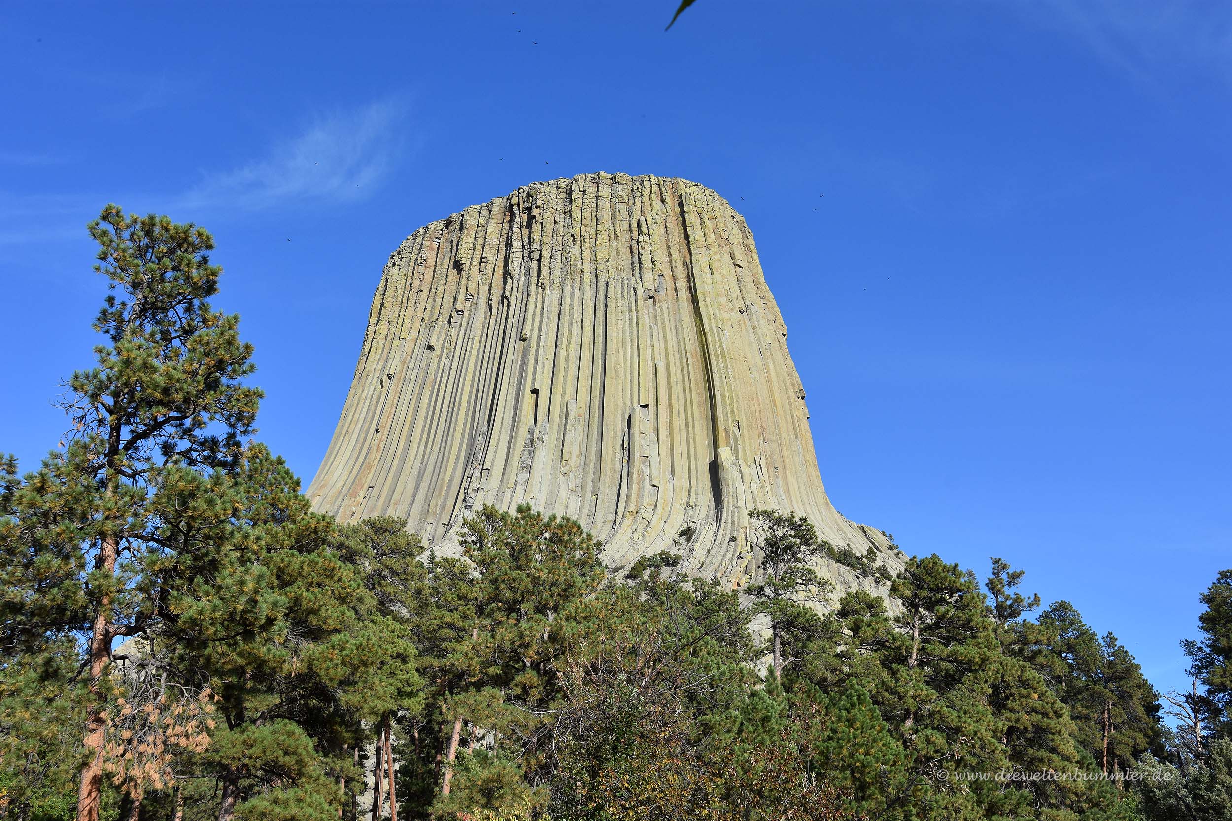 Dass dieser Berg aus verhärtetem Magma besteht, konnte man gut aus der Nähe sehen. Außerdem ist er ein Heiligtum der Indianer, aber andererseits ein beliebter Kletterfelsen. Wie auch immer, der Devils Tower ist eine sehr markante Landmarke in der ansonsten sehr flachen Umgebung. Wir umrundeten den Berg auf dem Devils Trail und erfreuten uns nicht nur an den Ausblicken, die man in die Landschaft von Wyoming hat, sondern auch an den Chipmunks, die wir auch hier wiedersahen.