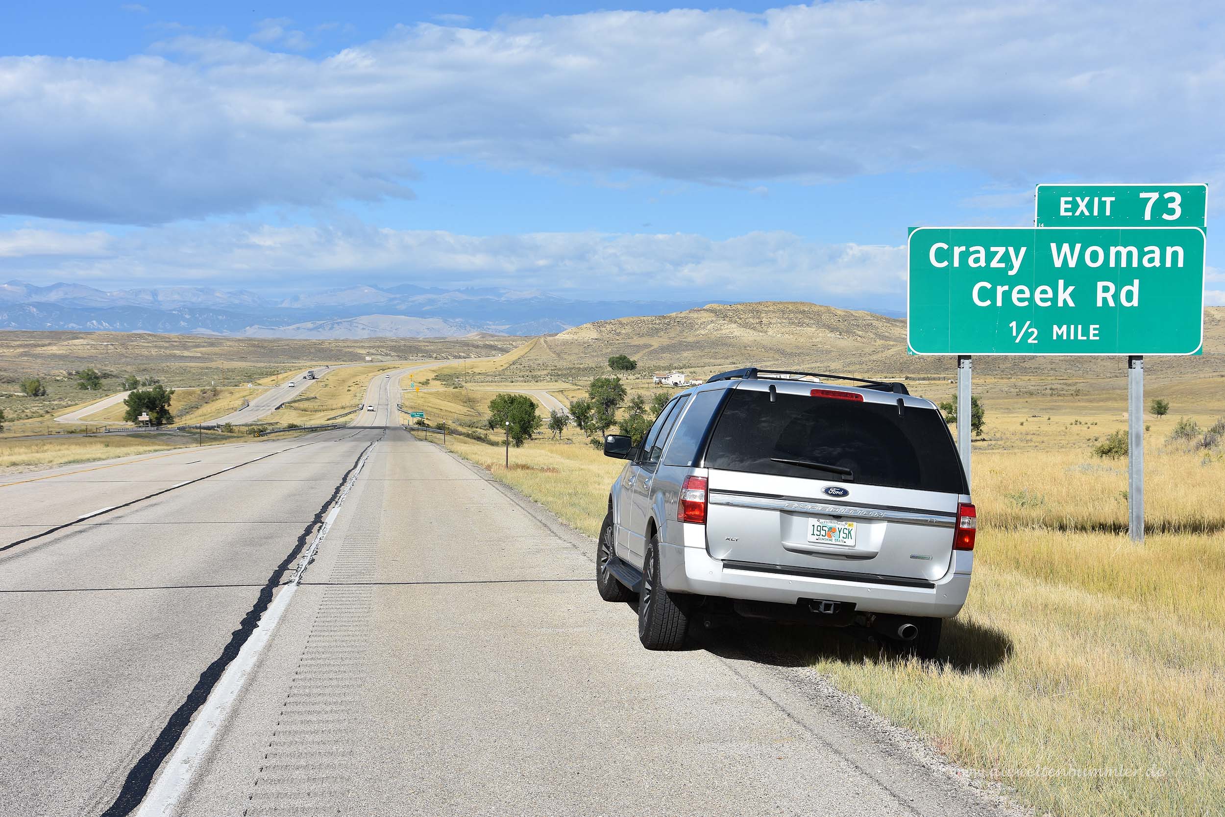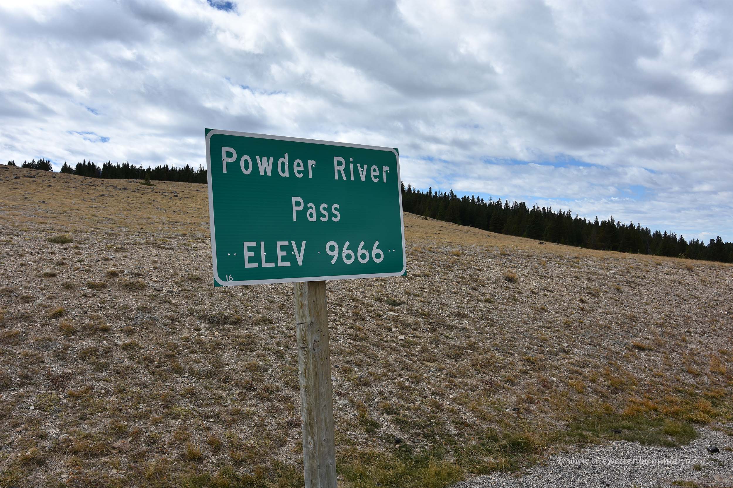 Faszinierend war, dass wir die gesamte Strecke ohne eine Serpentine gefahren sind und dann trotzdem mit dem Powder River Pass eine Höhe von 9666 Fuß erreichten. Das sind immerhin 2946 Meter. So hoch war ich noch nie mit dem Auto und so eine Höhe kann man mit dem Auto zumindest in den Alpen auch gar nicht erreichen. Und dennoch gab es von diesem Pass eigentlich keine besondere Aussicht. Abgesehen von der dünnen Luft und der frischen Temperaturen war kaum zu spüren, dass wir uns in einer Höhe befinden, die der Zugspitze gleicht.
