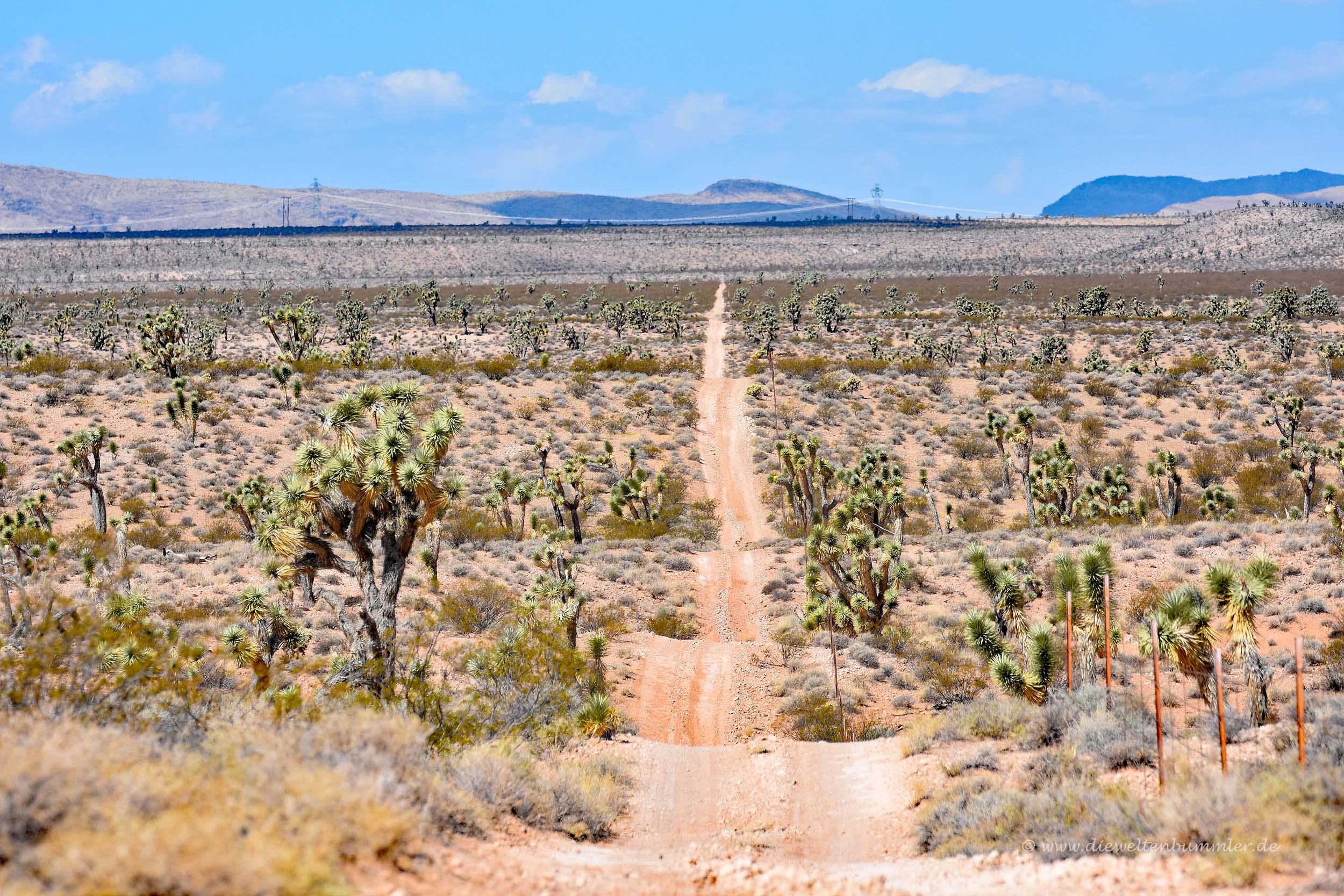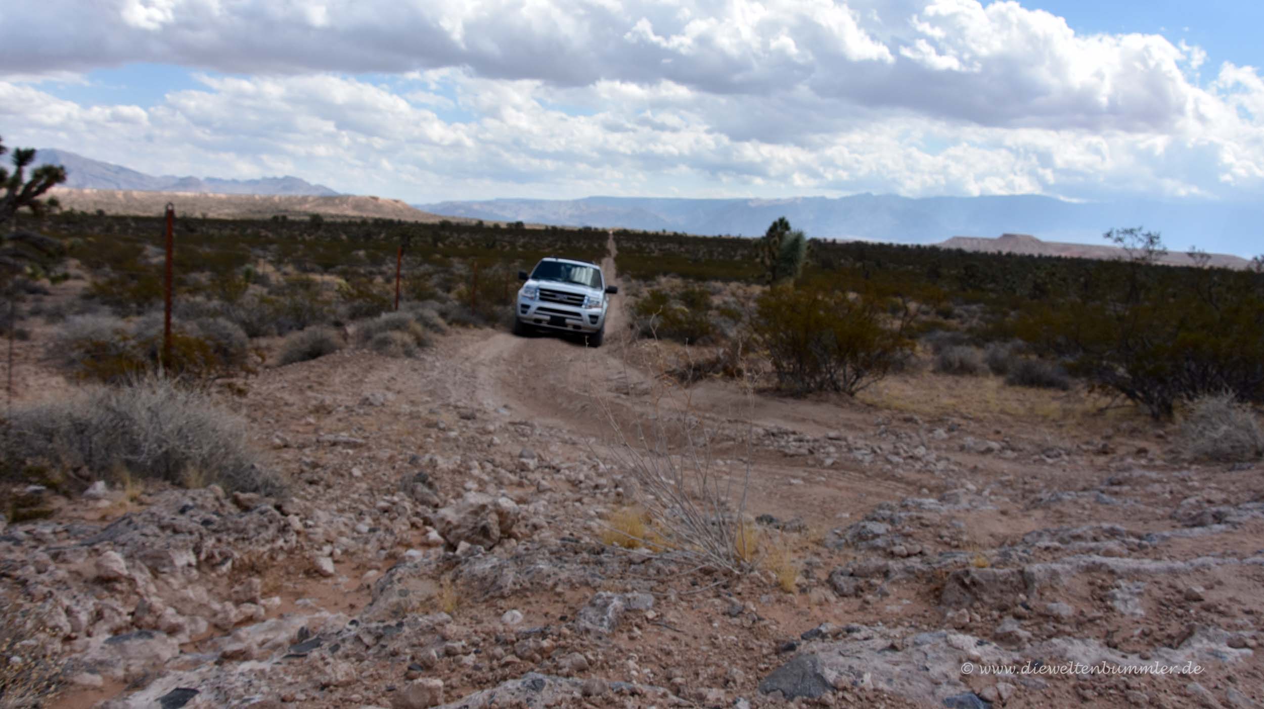 In einer Ortschaft namens Littlefield verließen wir die Interstate und fuhren auf einer Gravelroad, also einer Schotterpiste mitten in die Wüste hinein. Die Straße war in einem schlechten Zustand und konnte eigentlich nicht als Straße bezeichnet werden. Einige Male dachten wir auch darüber nach, ob es nicht besser sein, die Fahrt abzubrechen und wieder zur Interstate zurückzukehren. Doch laut ausgesprochen hatte das keiner von uns. Also fuhren wir auf dieser Schotterpiste weiter, überquerten die Grenze zu Nevada und waren irgendwo mitten in der Einsamkeit unterwegs. Kein Handynetz, keine Schilder und keine Menschen. Der Grund war das Dreiländereck von Nevada, Utah und Arizona, das wir besuchen wollten.