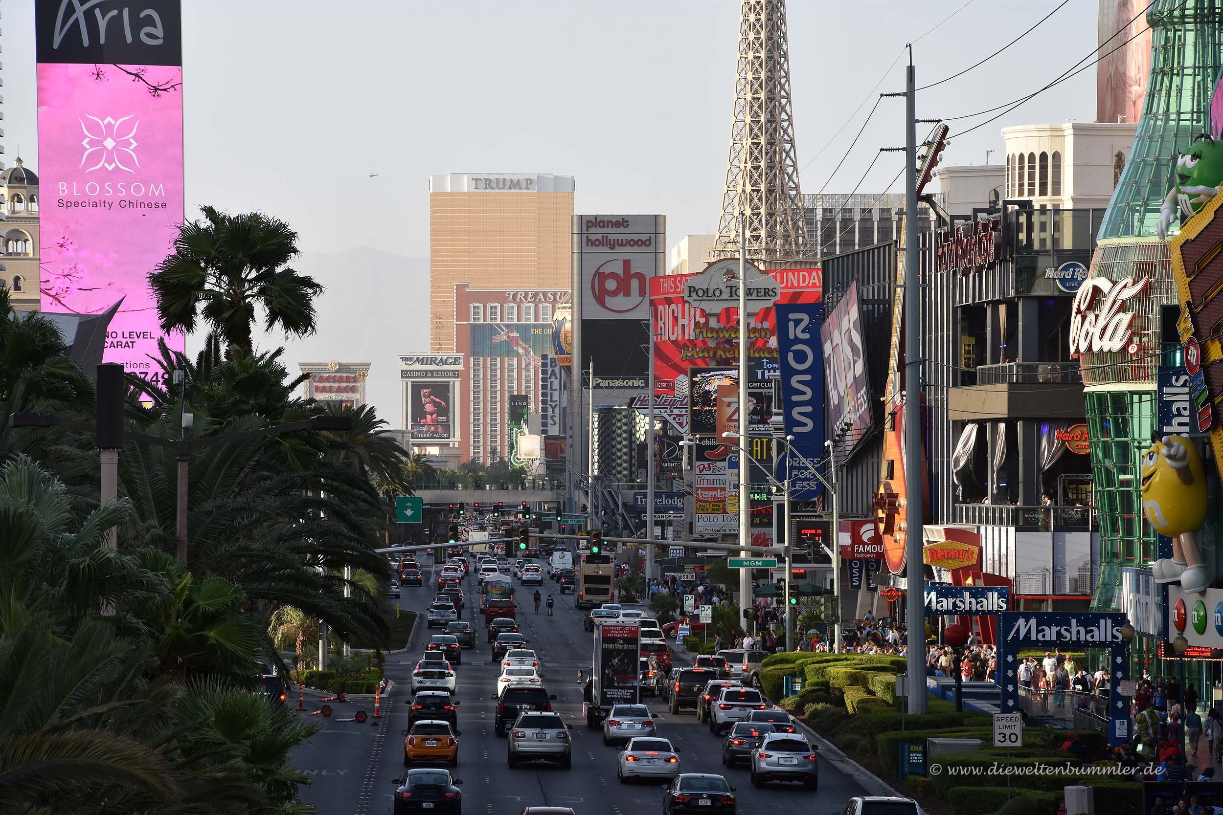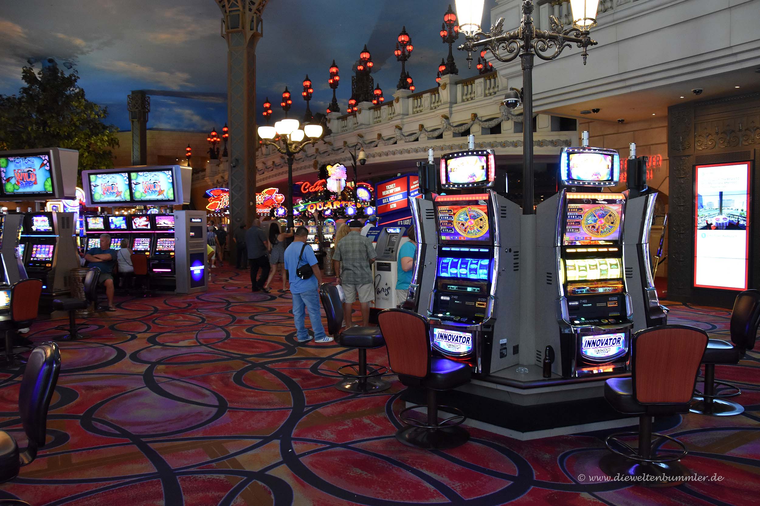 Aber wir waren natürlich nicht in Las Vegas, um das Zimmer zu genießen. Denn ausgerechnet hier, wo man so ein schönes Zimmer hat, kann man raus und eine Stadt erleben. Wir sind absolut keine Freunde von Bars, Casinos und dergleichen. Aber zumindest einmal sehen wollten wir die Stadt natürlich auch. Wir gingen zum Las Vegas Boulevard, wo wir direkt am Nachbau des Eiffelturms in irgendein Casino hineinspazierten.