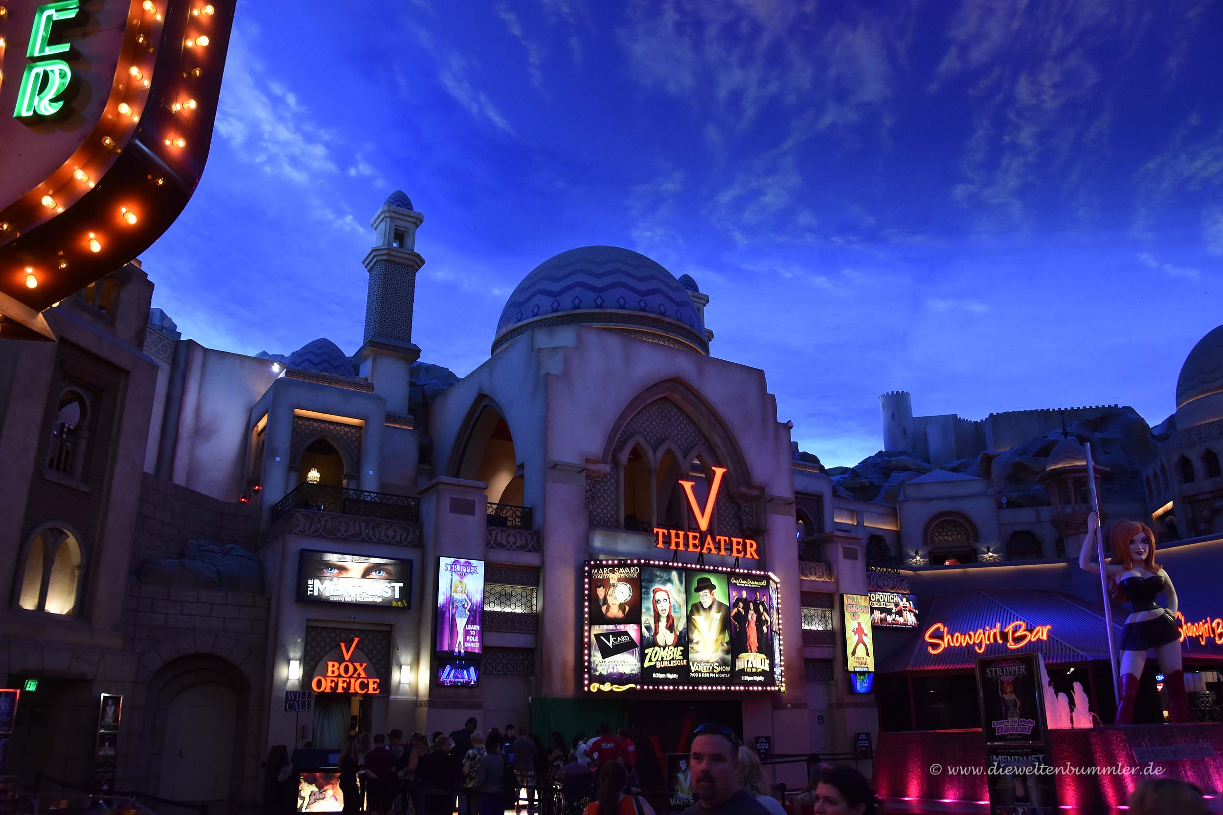Am Planet Hollywood Resort und Casino fanden wir uns plötzlich in einer Shoppingmall wieder, in der das Innenleben so ausgestaltet wurde, als würden wir uns in einer Nachtkulisse befinden. Es gab unheimlich viel zu sehen und es war natürlich alles bunt und auf Kommerz ausgelegt. Aber es war auch irgendwie interessant, das alles zu sehen.
