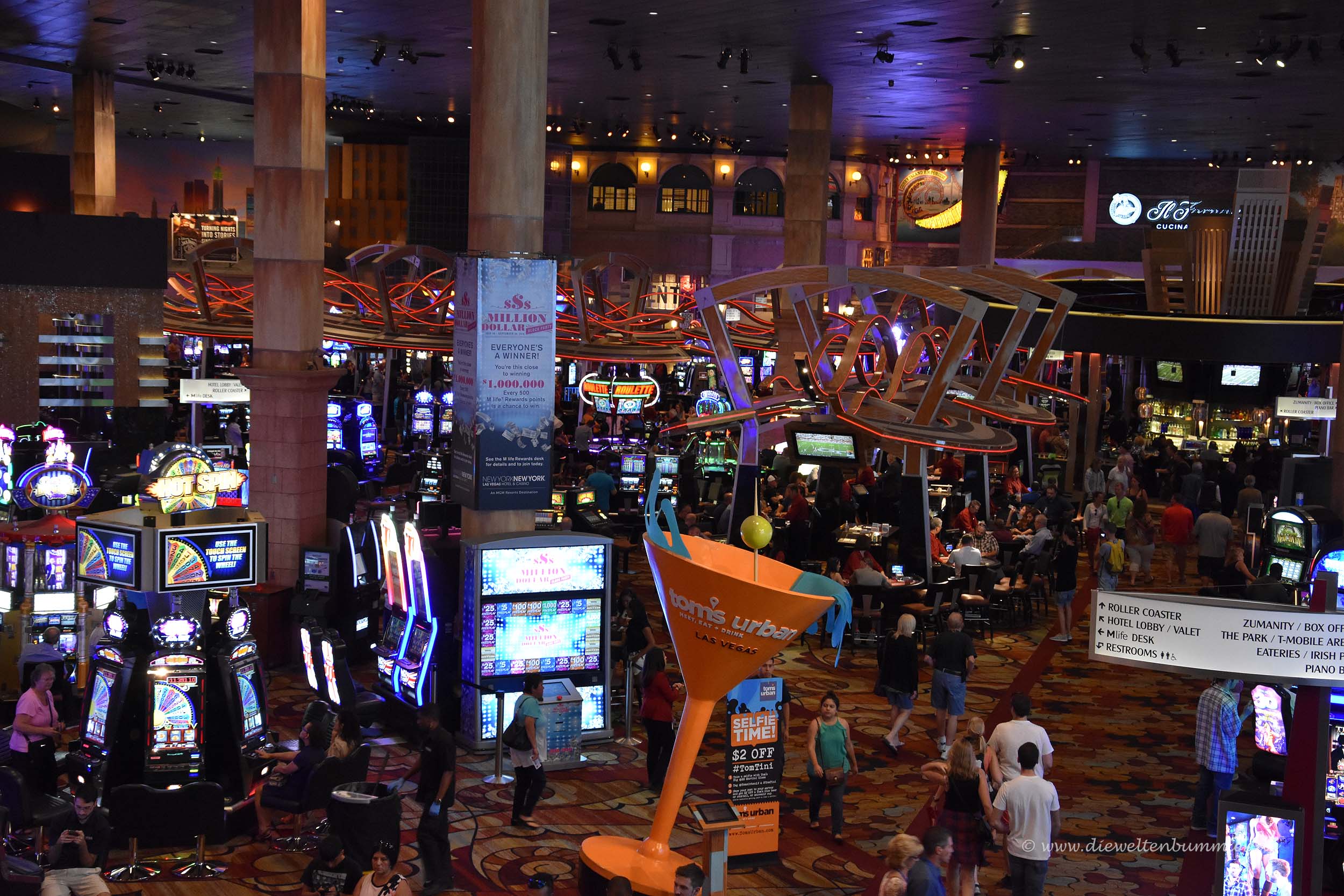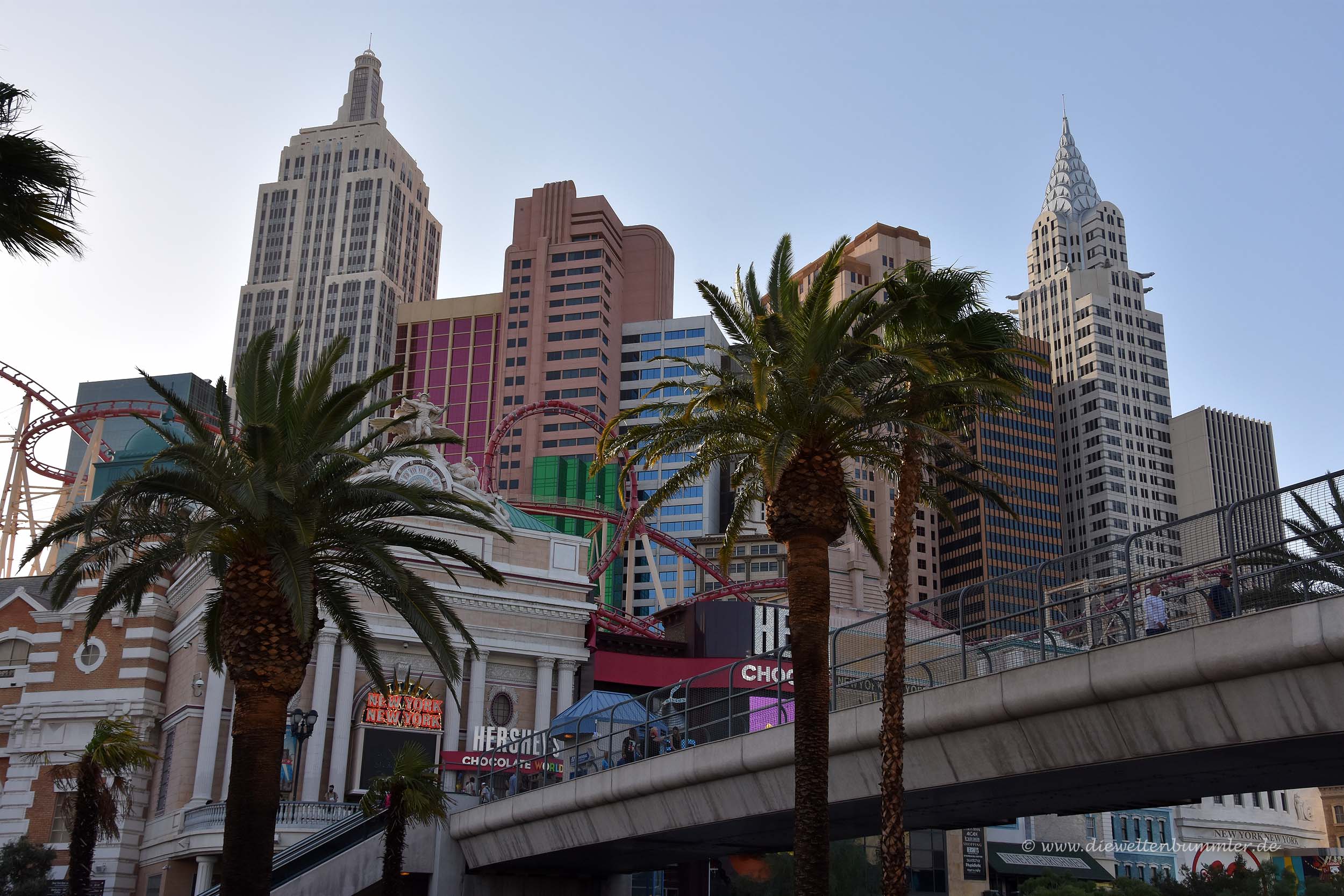 Dem Boulevard folgten wir bis zum MGM Hotel, wo wir die Straßenseite wechselten und uns das New York Hotel anschauten. Das berühmte Hotel, das im Stil der New Yorker Skyline erbaut wurde beherbergte natürlich auch ein Casino, aber zusätzlich auch noch eine Achterbahn. Es war einfach nur unglaublich und verrückt.