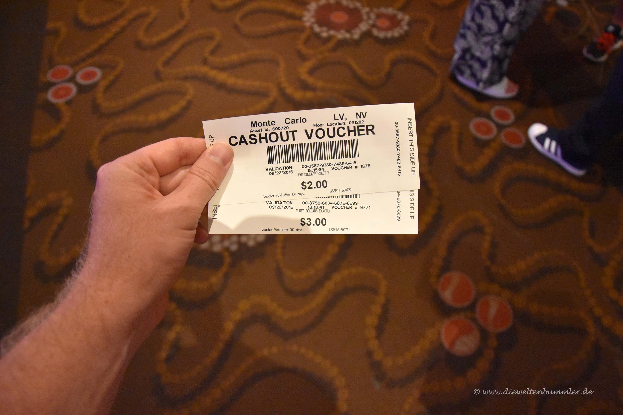 Allerdings ließen wir es uns nicht nehmen, in ein oder zwei Automaten auch mal einen Dollarschein einzuschieben. Insgesamt steckten wir fünf Dollar rein und gewannen auch fünf Dollar. Na, das ist doch mal was. Man bekommt den Gewinn jedoch nicht in bar wieder, sondern als Wertmarke, die man am Eingang des Casinos dann einzulösen hat. Das war aber selbsterklärend und wir machten das so, als würden wir das ständig machen.