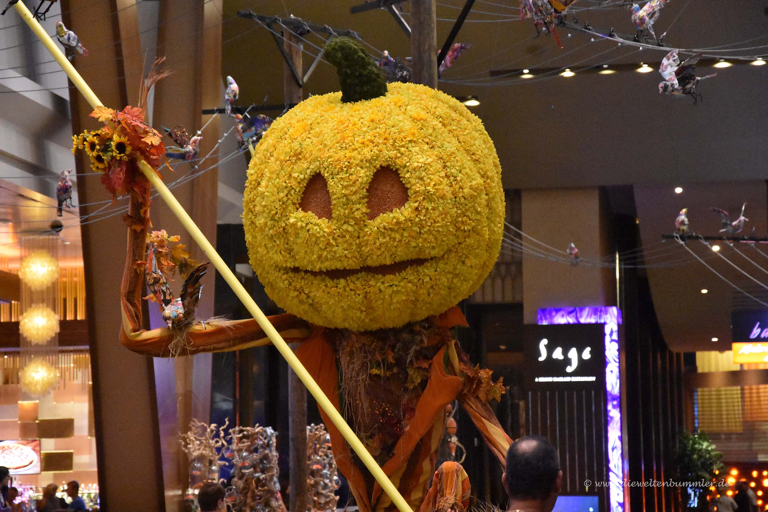 Wir warfen auch noch einen Blick in das Aria-Hotel mit seiner großen, runden Zufahrt und selbstverständlich auch in das Bellagio. Dort war die Lobby bereits komplett im Stil von Halloween geschmückt, obwohl es noch über einen Monat Zeit ist bis Halloween. Aber hier ließen sich die Amerikaner natürlich wieder nicht lumpen und es war eine unglaubliche Kreativität, die man bei dem Schmuckwerk an den Tag legte.