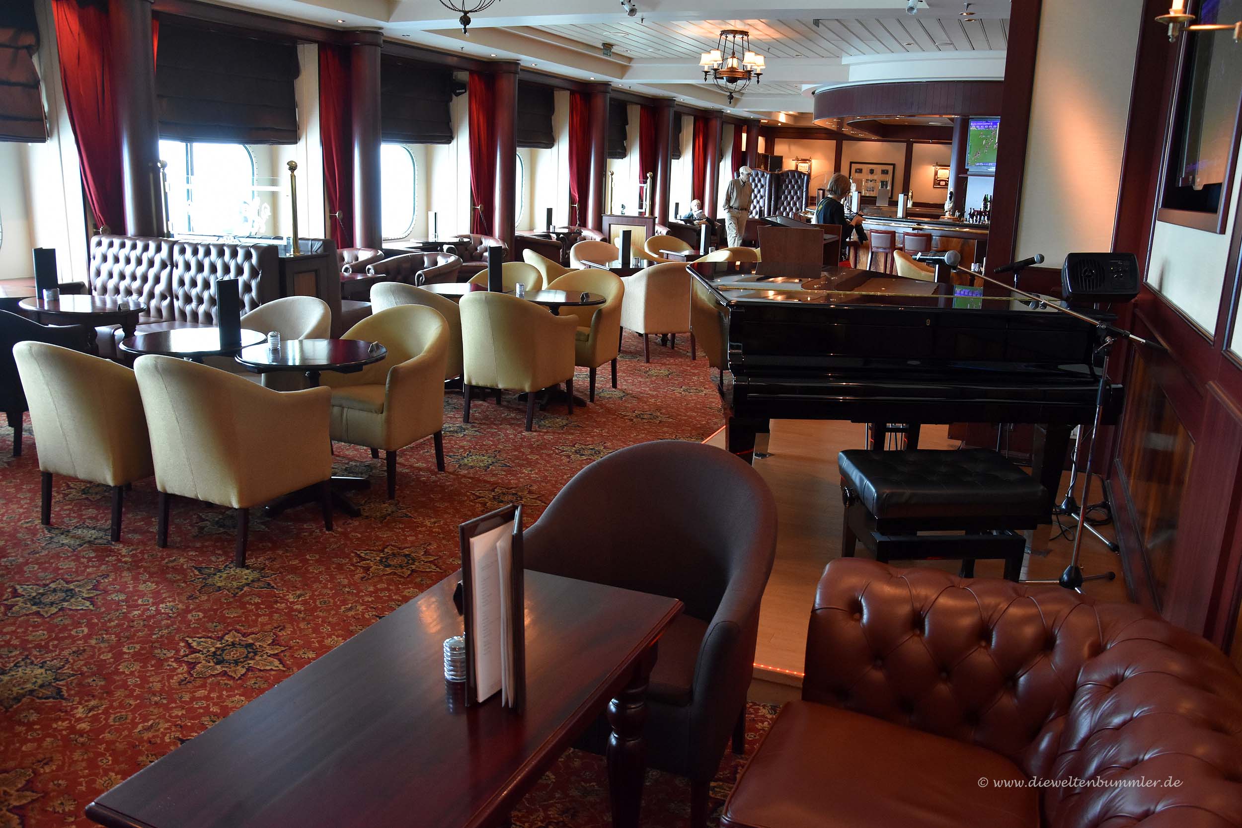 Nach dem umfangreichen Essen haben wir zum ersten Mal an diesem Tag die Zeit selber vertrieben. Keine Führung, kein Vortrag, nur ein bisschen Spazierengehen an Deck und Zurückziehen in die Kabine. Nun ja, bis halt der Afternoon-Tea im Queens Room an der Reihe war und wir dieses Mal auch einen Sitzplatz bekamen. Meine Güte, wie elegant. Man sitzt dort, lauscht der Livemusik und bekommt ständig Tee und Gebäck nachgereicht. Man will gar nicht mehr gehen.